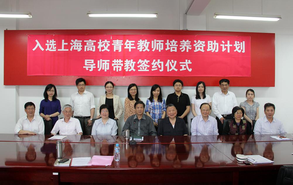 2012年5月18日,我院入選上海高校青年教師 培養(yǎng)資助計劃導(dǎo)師帶教簽約儀式在會議室舉行。圖為學(xué)院領(lǐng)導(dǎo)與全體入選本屆科研項目的青年教師、帶教導(dǎo)師合影