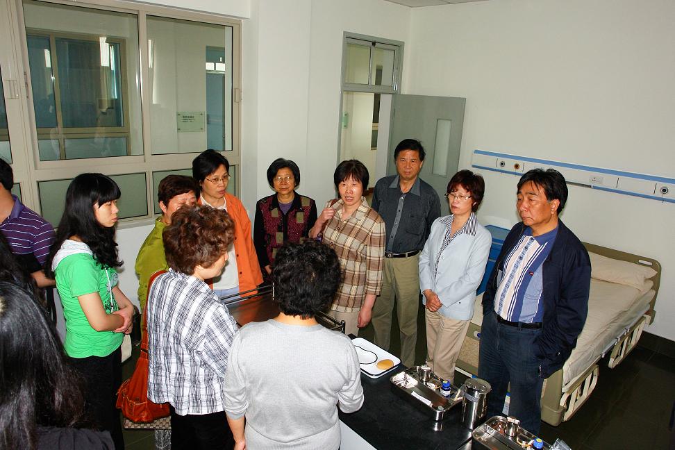 2012年5月18日,上海東海職業(yè)技術(shù)學(xué)院一行 11人來我院作交流訪問。圖為我院院長杜飛龍、黨委副書記夏臻陪同來訪者參觀護理專業(yè)實訓(xùn)中心