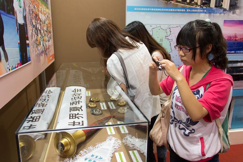走進(jìn)展覽館,學(xué)員們紛紛舉頭觀望,并拿出相機(jī)拍下珍貴的圖片做留念。展覽館位于展覽中心的西一館,由"十大重要進(jìn)展"、"十大改革創(chuàng)新"、"十大民生變化"、"十大新景新貌"、"十大心靈感動(dòng)"等5部分組成,通過1100多幅珍貴照片、近百件大型實(shí)物互動(dòng)模型、制景和精彩視頻、多媒體展示等,對(duì)由社會(huì)各界代表推選出的五年來上海的100項(xiàng)"城市新印象"新成就候選項(xiàng)目進(jìn)行藝術(shù)化呈現(xiàn),形象反映出五年來上海經(jīng)濟(jì)社會(huì)發(fā)展中為世人所矚目、有廣泛影響力的重大事件、創(chuàng)新舉措、民生變化、先進(jìn)人物和群體。