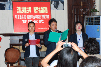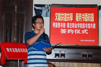 簽約儀式上,震旦職業(yè)學(xué)院學(xué)生、明復(fù)圖書館讀書會(huì)、主持人晨光作了精彩的配樂美文朗誦。