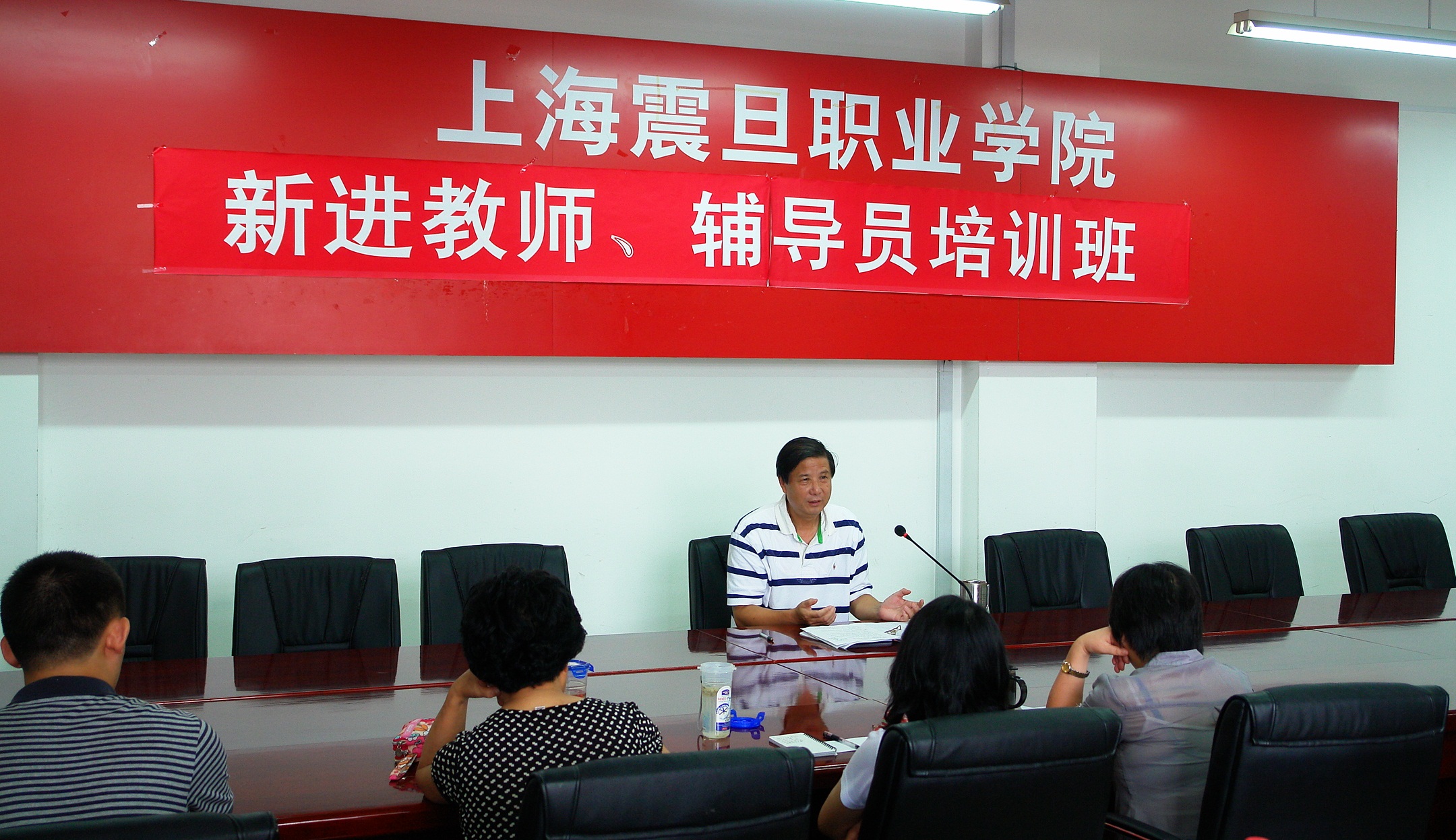 2012年9月4日,新進教師、輔導員培訓班在我院會議室舉行。圖為院長杜飛龍為新進教師作培訓。
