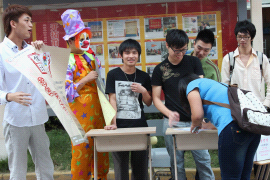 9月19日下午4:00,在團委學生會社會實踐部的組織下,我校文學社、籃球社、街舞社等十八個社團在宣傳欄前擺攤招新。 各個社團使出看家本領,街舞社的社員現(xiàn)場跳起了街舞,吸引大批新手圍觀。吉他社也不讓步,動聽的歌聲吸引了不少同學。而新創(chuàng)辦的投資與理財社則吸引了大批經(jīng)濟系的同學。 其中,天使之翼社團憑7張報名表穩(wěn)占招新人氣排名榜第一位。 本次招新活動在同學們的踴躍參與中圓滿完成。(學生記者團 陳寧寧)