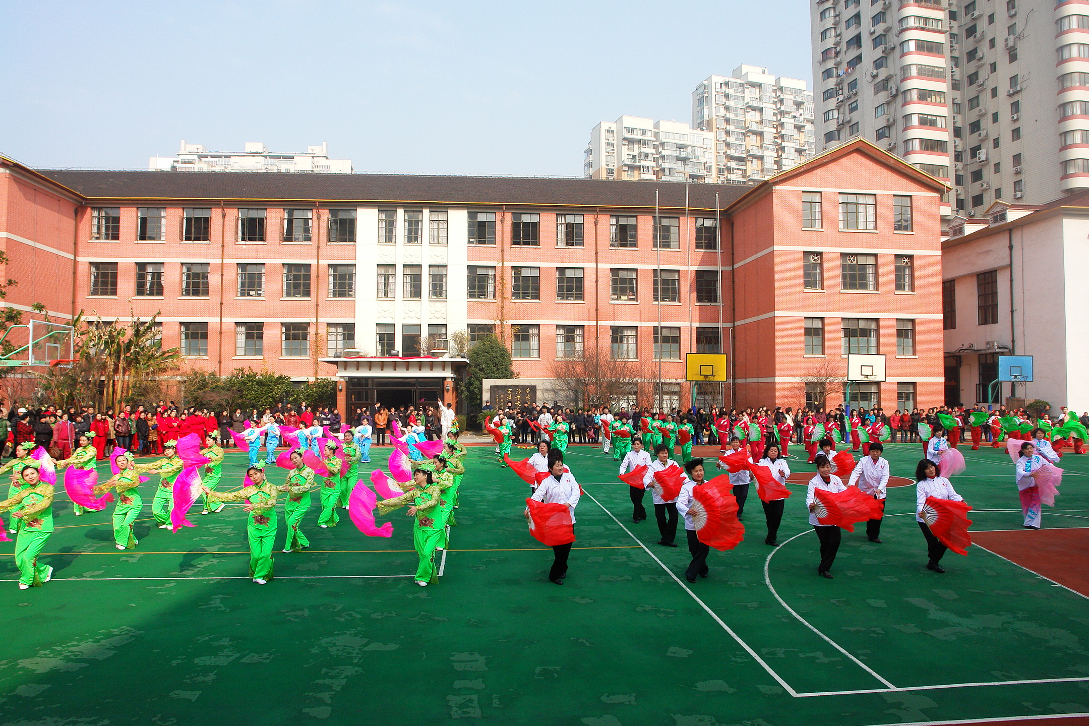 教工運動會女教職工齊跳海派秧歌舞
