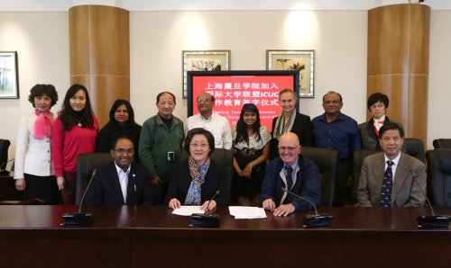 出席震旦學(xué)院加入國家大學(xué)聯(lián)盟ICUC合作教育簽字儀式的還有震旦職業(yè)學(xué)院院長杜飛龍,黨委副書記夏臻,院長助理張沈老師以及國際交流處張佩佩。