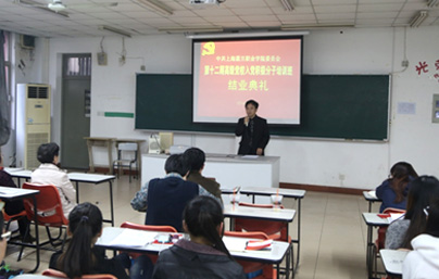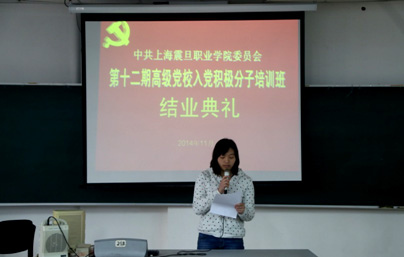 2014年11月13日下午,上海震旦職業(yè)學(xué)院第十二期高級黨校入黨積極分子培訓(xùn)班結(jié)業(yè)典禮在一號樓409教室隆重舉行。黨委書記黃晞建及各二級學(xué)院的黨總支(支部)書記出席了結(jié)業(yè)典禮。