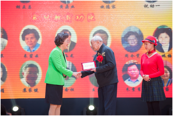 震旦職業(yè)學(xué)院名譽(yù)院長(zhǎng)、工程院院士王振義教授17日來(lái)校參加了活動(dòng),并接受了突出貢獻(xiàn)獎(jiǎng)牌。