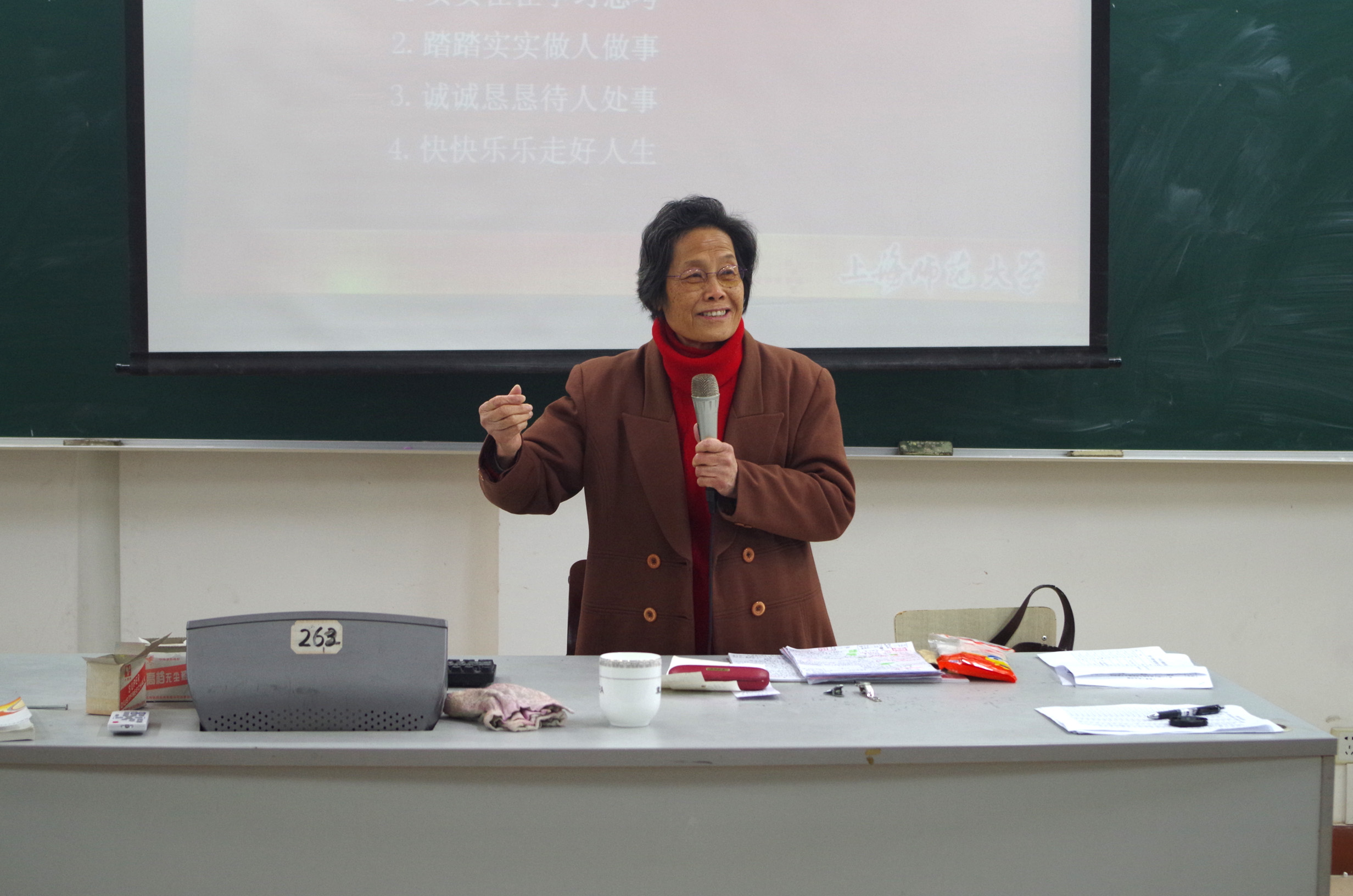 在報告中,70多歲高齡的王敏如老師用豐富的肢體語言、慷慨激昂的言語,幽默詼諧的詞匯講訴一個個生動感人的故事,使得全場不時響起雷鳴般的掌聲,也使得在座所有的學(xué)員們都深受鼓舞和感動。有著49年黨齡的王敏如老師將對黨校學(xué)員的殷切希望濃縮成三個詞:堅信、堅定、堅持。她要求同學(xué)們在爭取入黨的過程中要保持對黨的高度信心,要堅定愛黨的信念,要堅持高尚的品行。