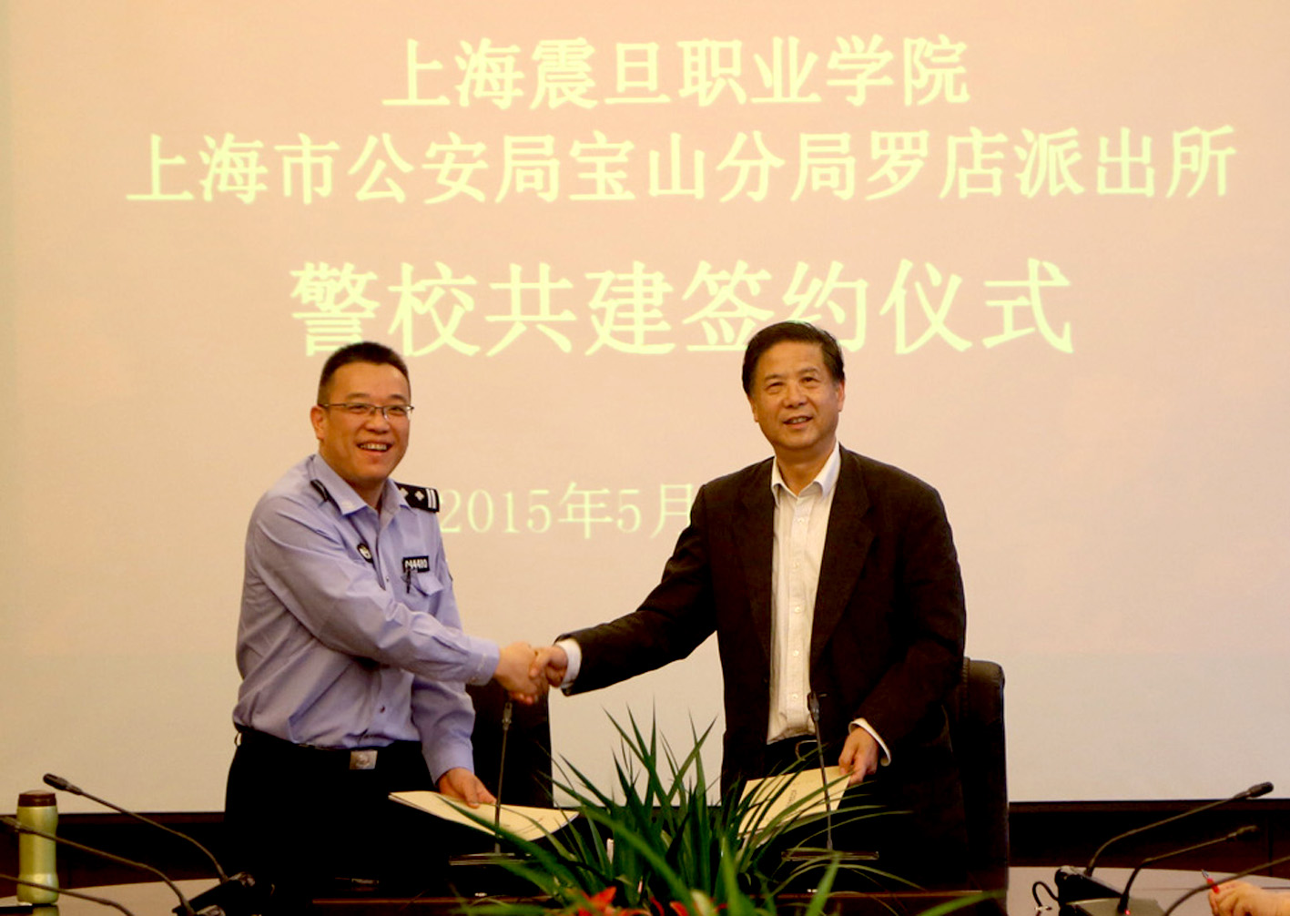 5 月 11 日,上海市公安局寶山分局羅店派出所與我校警校共建簽約儀式在國際會議中心舉行。羅店派出所所長羅瑋良、教導員周學東、警官蔡云明,我院杜飛龍院長、黨委副書記夏臻、后保處長孫興強出席簽約儀式。震旦學院各分學院領導、以及各職能處室負責同志參加了儀式。儀式由后保處金周偉主持。