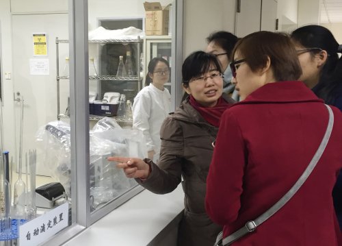 最后,同學(xué)們來(lái)到了養(yǎng)樂(lè)多的工廠車間,近距離地觀摩了養(yǎng)樂(lè)多產(chǎn)品的生產(chǎn)過(guò)程。大家依次參觀了菌種室、培養(yǎng)室、品質(zhì)管理室、調(diào)和室等車間,不但觀察到了大型的生產(chǎn)設(shè)備、全自動(dòng)流水線操作,也看到了平時(shí)在學(xué)校實(shí)驗(yàn)室用過(guò)的自動(dòng)滴定裝置、折光儀等實(shí)驗(yàn)器材在產(chǎn)品生產(chǎn)檢驗(yàn)中的應(yīng)用。