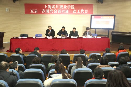 震旦教育發(fā)展基金會理事長張惠莉、震旦職業(yè)學院董事長張沈、黨委書記黃晞建、院長杜飛龍、黨委副書記、工會主席夏臻、工會副主席周月華等院領導與68名正式代表、和長期以來關心和支持工會工作的20余名列席代表參加了大會開幕式。