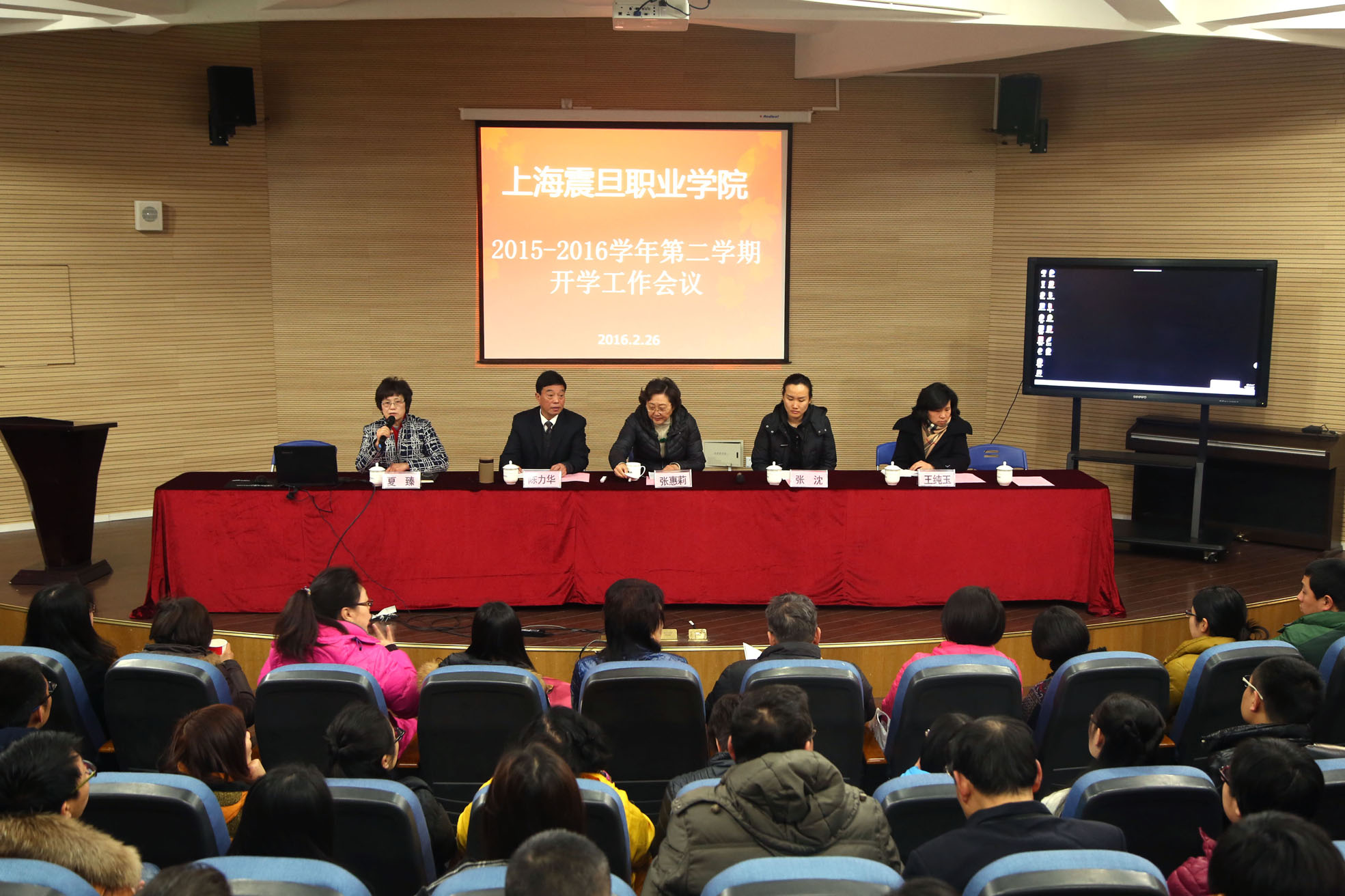 2月26日上午,我院2015—2016學(xué)年第二學(xué)期開學(xué)工作會(huì)議在體藝樓實(shí)驗(yàn)劇場(chǎng)隆重召開。震旦教育基金會(huì)理事長(zhǎng)、管委會(huì)主任張惠莉、震旦職業(yè)學(xué)院董事長(zhǎng)張沈、院長(zhǎng)陳力華、黨委副書記夏臻、副院長(zhǎng)王純玉以及全體專兼職教師、輔導(dǎo)員、各部處室管理人員及教輔人員參加了會(huì)議,會(huì)議由黨委副書記夏臻主持。