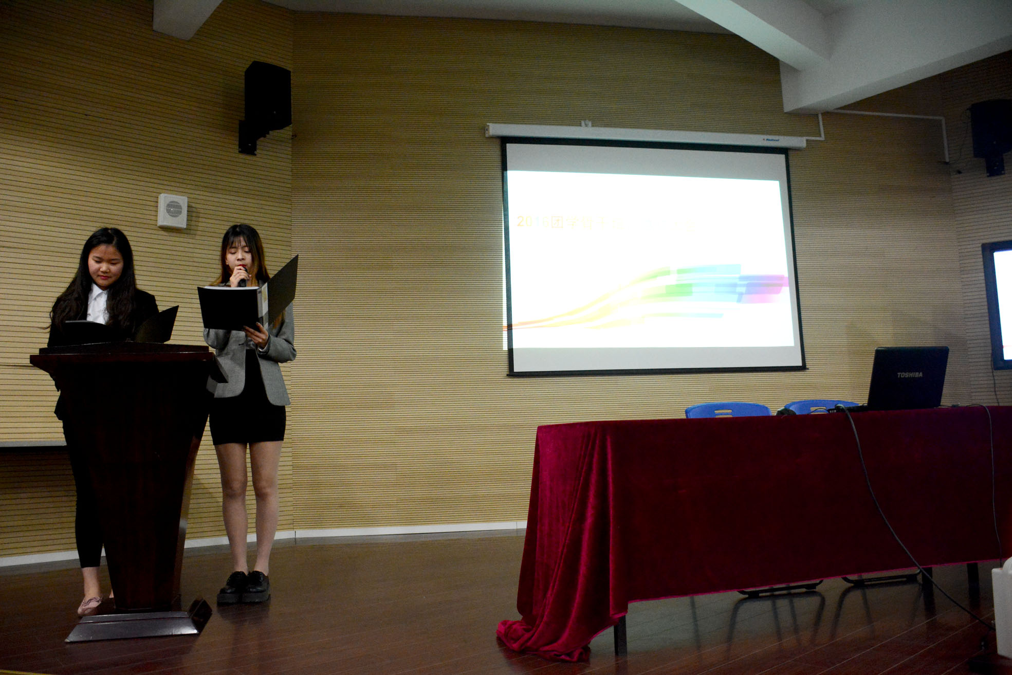 2016年4月21日下午4點半,在體藝樓實驗劇場召開了我校2016年度第一期團學骨干培訓總結(jié)會。參加此次培訓的主要是來自校團委學生會14個部門的學生干部以及學生骨干,校黨委副書記夏臻老師、團委書記曹曉莉老師出席了本次總結(jié)大會。