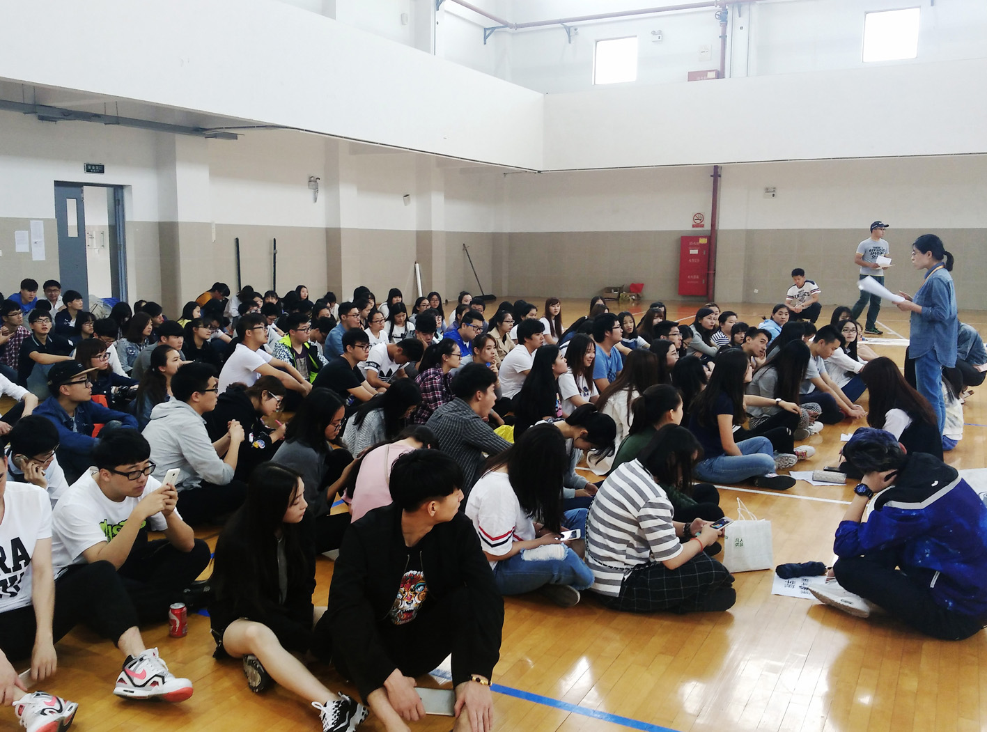 中午12:30在學(xué)生處長(zhǎng)兼心理健康教育中心主任毛燕靜老師開(kāi)場(chǎng)致辭后,朱新帥老師和兩名外援教練帶領(lǐng)來(lái)自五個(gè)二級(jí)學(xué)院的136名學(xué)生參加了本次團(tuán)隊(duì)巨畫(huà)活動(dòng)。教練將所有團(tuán)隊(duì)成員分成了8個(gè)大組,每個(gè)大組下再分3個(gè)職能小組,分別為設(shè)計(jì)組(負(fù)責(zé)前期本組作品的設(shè)計(jì)及最后的拼接)、繪畫(huà)組(主要負(fù)責(zé)作品的勾勒及顏色的填充)、后勤組(主要負(fù)責(zé)原材料的整合及其他的輔助任務(wù))。分組后,8個(gè)小組進(jìn)入了有條不紊的團(tuán)隊(duì)創(chuàng)作中。