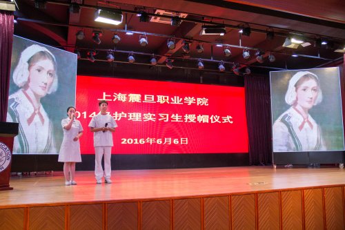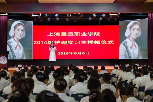 6月6日下午,上海震旦職業(yè)學(xué)院公共衛(wèi)生與護(hù)理學(xué)院2014級護(hù)理專業(yè)實(shí)習(xí)護(hù)生授帽儀式在學(xué)院大禮堂隆重舉行。震旦教育發(fā)展基金理事長張惠莉、震旦職業(yè)學(xué)院董事長張沈、震旦職業(yè)學(xué)院副院長王純玉、震旦職業(yè)學(xué)院黨委副書記夏臻出席儀式,并應(yīng)邀與公共衛(wèi)生與護(hù)理學(xué)院院長趙佩君、黨總支書記扈蘭香、副院長司曉晶、護(hù)理專業(yè)主任吳景芳共同為實(shí)習(xí)護(hù)生授帽,14級護(hù)理專業(yè)共224名學(xué)生參加儀式。