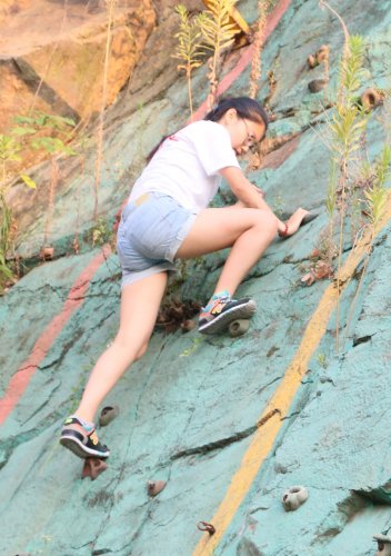 攀巖過程中,老師怕女生體力不夠,讓她們稍微爬一段感受一下就可以下來,但我們的“娘子軍”幾乎每個人都努力爬到了頂峰。讓人感動的是,男生們都自覺站在巖面的最下方,為女生們架起保護(hù)屏障,并告訴他們自己爬過的經(jīng)驗(yàn),例如哪塊巖石較小或哪塊有些松動千萬不能踩。