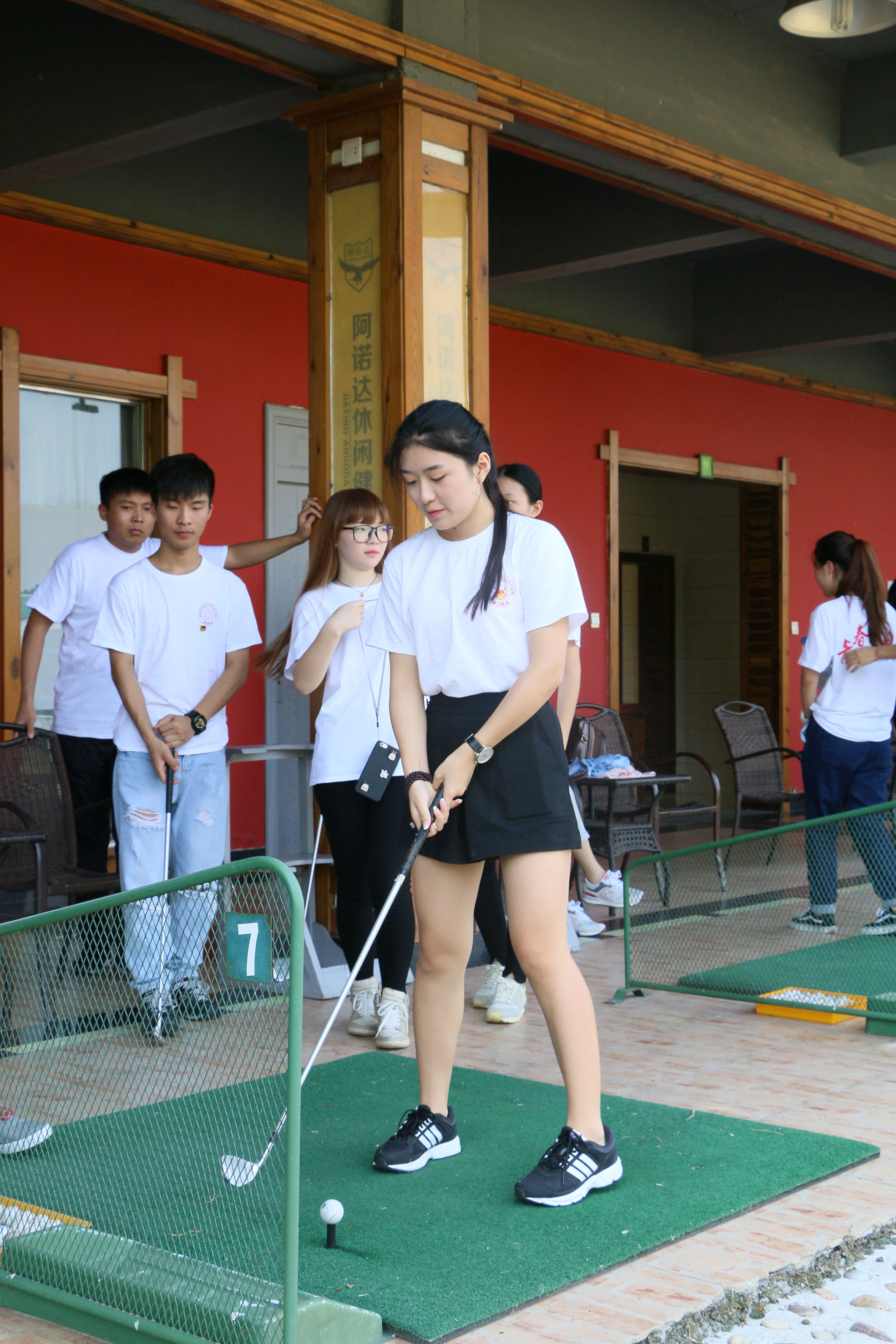 活動第一天,主要進(jìn)行了高爾夫、攀巖、劃船、射箭和團(tuán)體大腳板等五項(xiàng)活動。同學(xué)們分組之后首先進(jìn)行的是劃船,換上救生衣兩兩一組,開始大家都沒有經(jīng)驗(yàn),很多組的小船在原地打轉(zhuǎn),很快就有同學(xué)掌握了技巧,如何把小船順利往前劃而不會搖晃,熟練的同學(xué)紛紛向大家分享經(jīng)驗(yàn)。