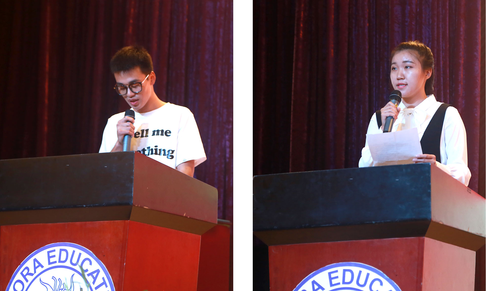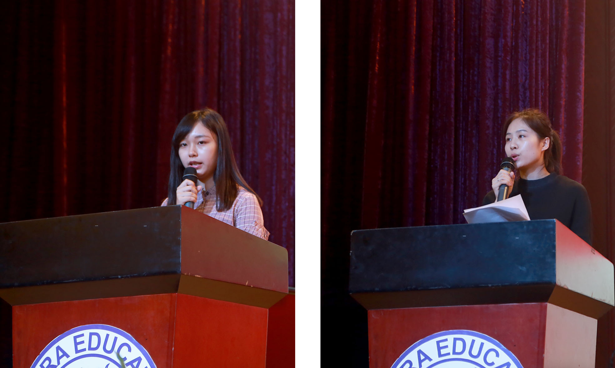 朱書晴、崔佳佳同學代表老生發(fā)言