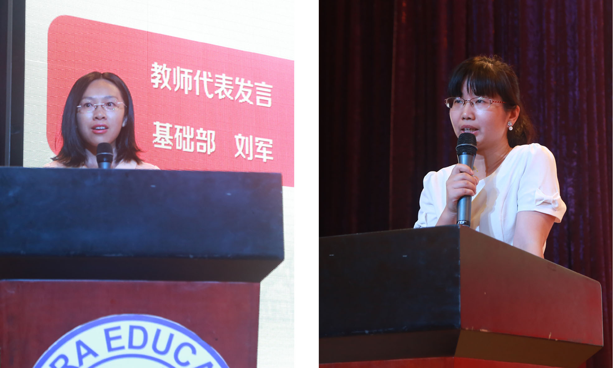 劉軍、司曉晶老師代表全體教師發(fā)言
