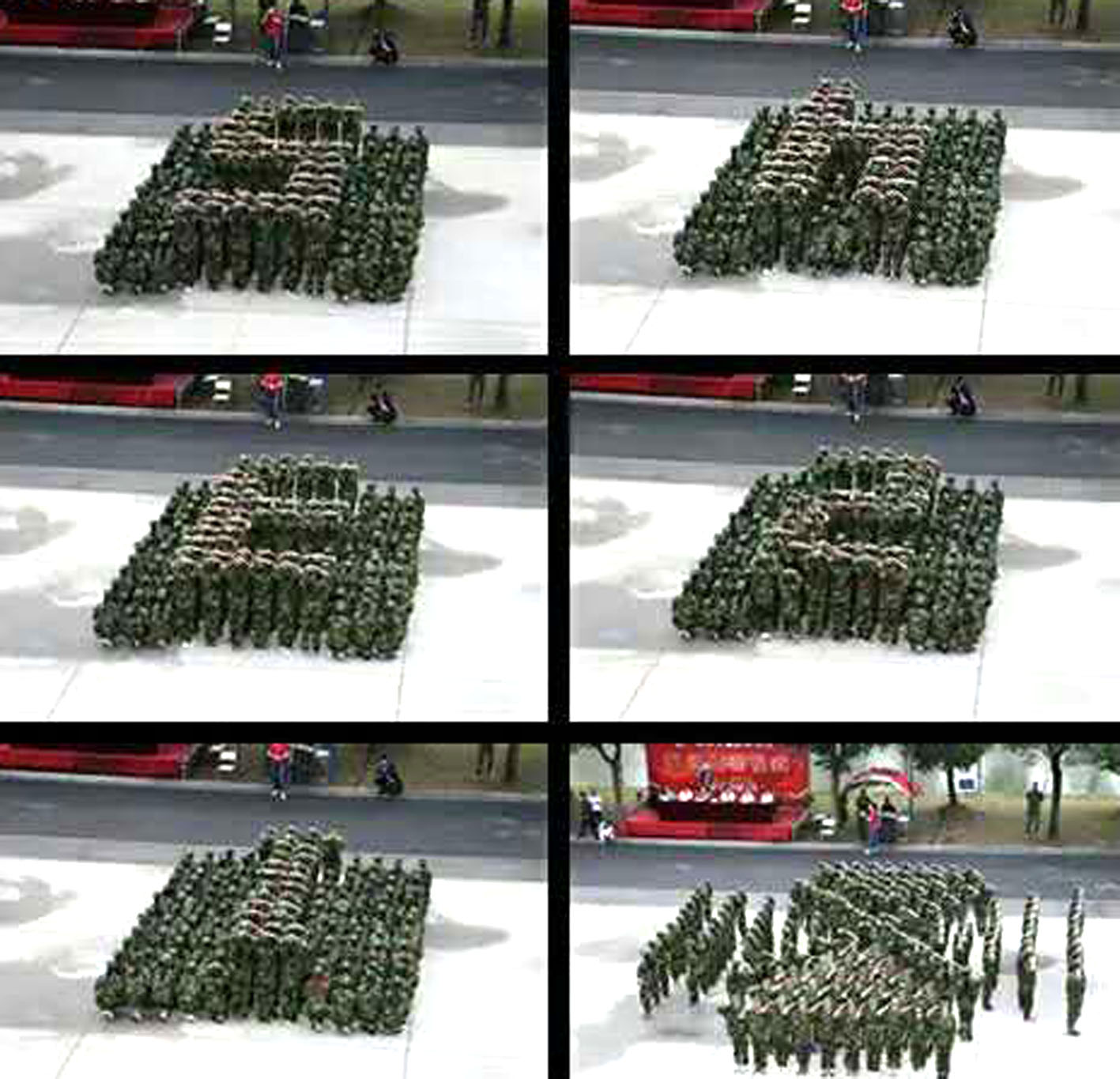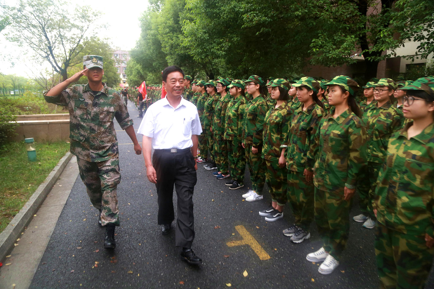 參加軍訓的全體新生按照軍訓的編隊序列,排列成21個整齊的方隊,以迎接學院黨政領導的檢閱。陳力華院長檢閱了各軍訓方隊。