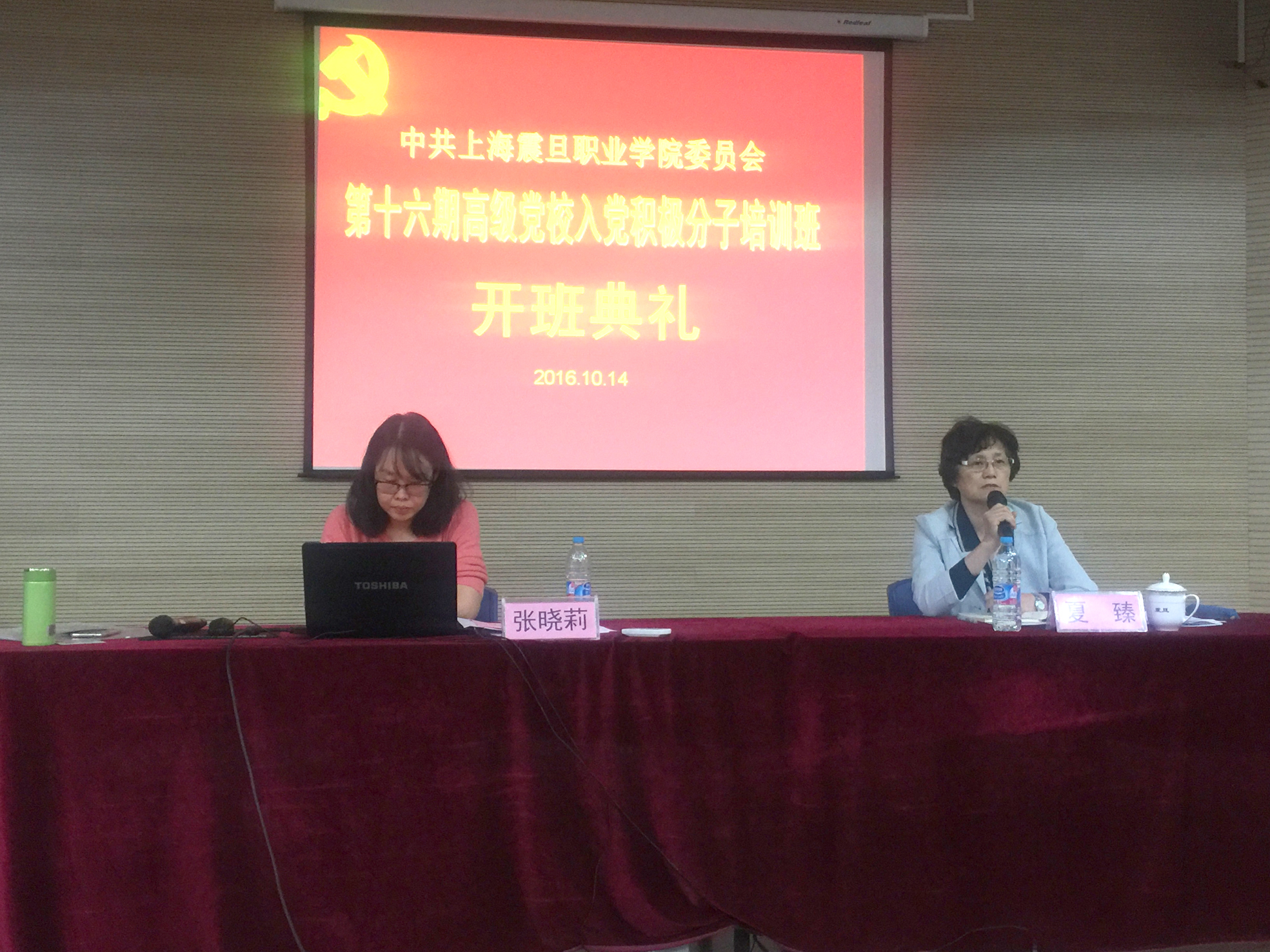 2016年10月14日下午,上海震旦職業(yè)學(xué)院第十六期高級(jí)黨校培訓(xùn)班開班典禮在體藝樓報(bào)告廳舉行。黨委副書記夏臻出席典禮并講話。黨校教務(wù)長(zhǎng)張曉莉和各二級(jí)學(xué)院96名入黨積極分子參加了開班典禮。