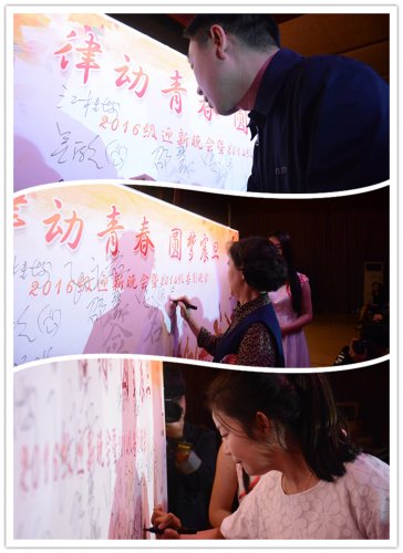 同學(xué)們對晚會熱情滿滿,6點(diǎn)正式入場后不久,大禮堂已是座無虛席。18時30分,大禮堂燈光驟暗,六位青春靚麗的主持人攜手閃亮登場。傳統(tǒng)的紅毯儀式,在追光燈的照耀下拉開了本次晚會的帷幕。出席本次活動的學(xué)院老師與團(tuán)委學(xué)生會各部門部長們,在同學(xué)們熱情的呼聲中一一亮相,緩步走過紅毯,于大舞臺前的簽字版上簽名留念。