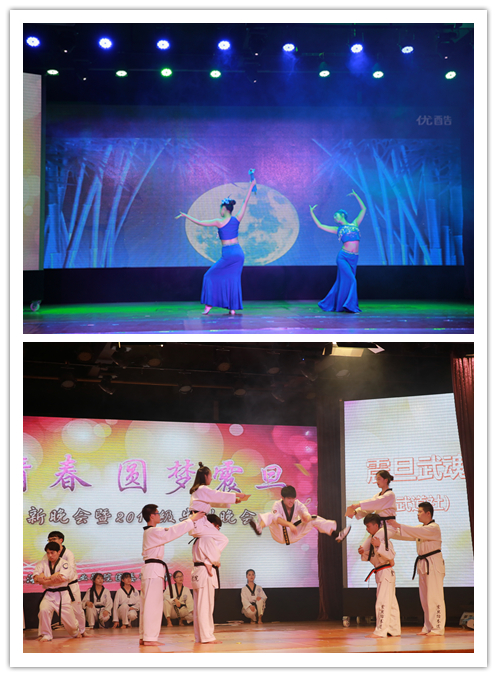 紅毯儀式結(jié)束后,幕布緩緩拉開,炫目的燈光勁爆的音樂瞬間吸引了同學(xué)們的眼球,熱辣的開場舞在一片薄薄的淡霧中呈現(xiàn)而出。動感十足的街舞表演帶動了現(xiàn)場氣氛,熱舞之后的美聲合唱則讓全場瞬間安靜了下來,歌者不俗的唱功和真情的流露打動了在場所有人。隨后的獨(dú)唱與獨(dú)舞串燒則將音樂與舞蹈的藝術(shù)形式完美體現(xiàn)出來,將我校學(xué)生的風(fēng)采展現(xiàn)地淋漓盡致。緊接著傣族舞《畫傘幽蘭》在薄霧中登場,與熱舞不同,傣族舞充分展現(xiàn)了女子的柔美。隨后的獨(dú)唱與獨(dú)舞串燒則將音樂與舞蹈的藝術(shù)形式完美體現(xiàn)出來,將我校學(xué)生的風(fēng)采展現(xiàn)地淋漓盡致。吉他彈唱《Youngforyou》,精心制做的MV,默契的合作,則為同學(xué)們帶來一陣別樣的清新風(fēng)。小品節(jié)目《軍訓(xùn)那點(diǎn)事》通過略顯夸張的手法,以詼諧幽默的方式呈獻(xiàn)出了新生軍訓(xùn)時的刻苦訓(xùn)練經(jīng)歷,《軍訓(xùn)歌》更是勾起了對軍訓(xùn)時光難以忘懷的回憶。