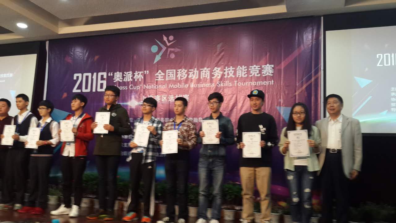 我院陳萍老師、葉素梅老師帶領(lǐng)14級物聯(lián)網(wǎng)應(yīng)用技術(shù)專業(yè)諸佳星、許少凡和14級計算機多媒體技術(shù)專業(yè)吳秋洋三位同學(xué)獲得2016年”奧派杯”移動商務(wù)技能競賽上海賽區(qū)高職組團體三等獎!