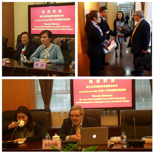 2016年11月21日下午,瑞士北沃州經(jīng)濟發(fā)展協(xié)會會長Jean-MarcBuchillier先生一行來到上海震旦職業(yè)學(xué)院參觀訪問。