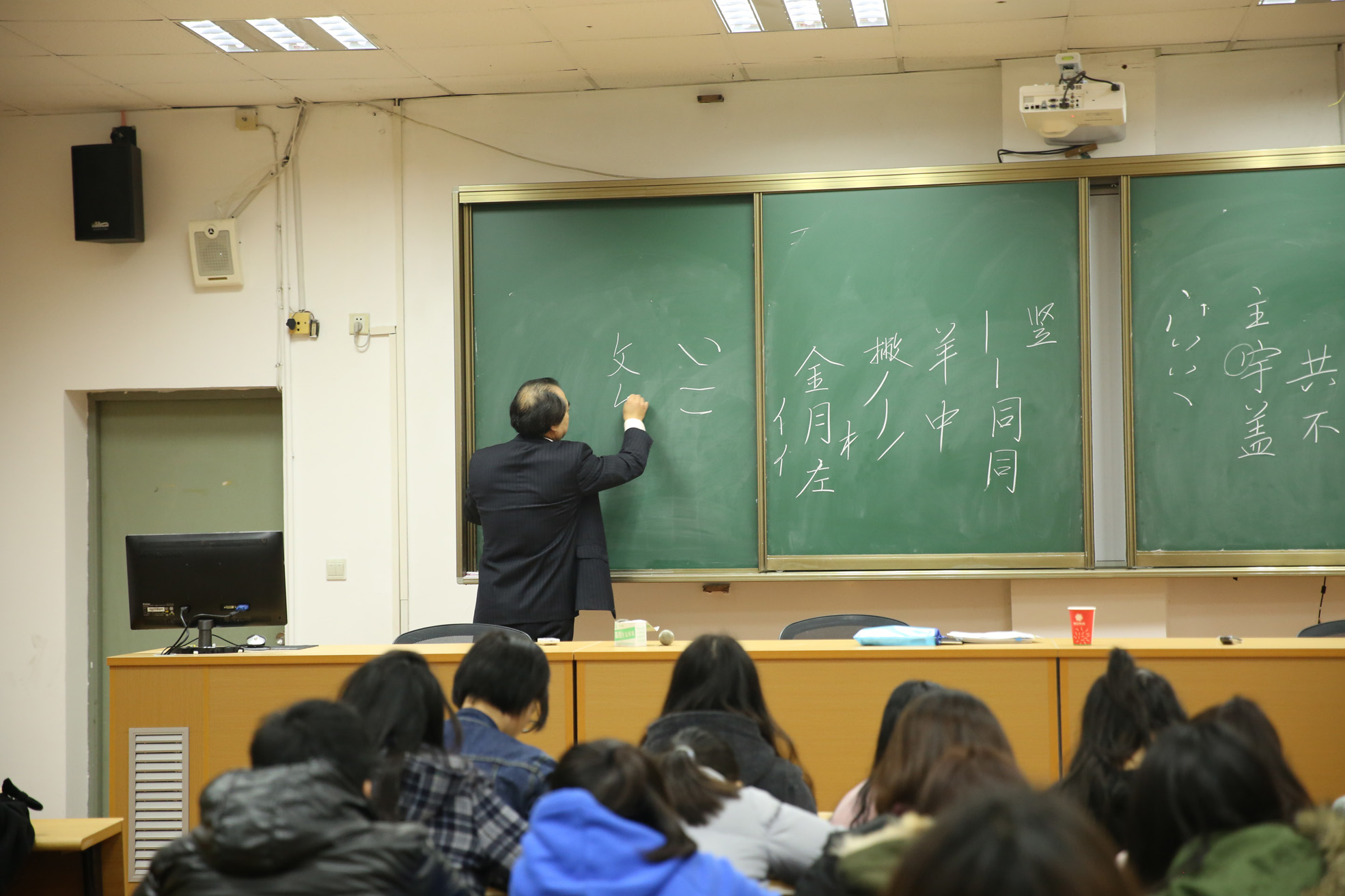 陳鵬老師針對(duì)大學(xué)生雖已學(xué)會(huì)寫(xiě)字但未必能將字寫(xiě)好并缺少老師指導(dǎo)的現(xiàn)狀,他特意帶來(lái)了一場(chǎng)“怎樣寫(xiě)好行書(shū)”的書(shū)法課。他在講座中強(qiáng)調(diào):書(shū)法藝術(shù)是中國(guó)文化的一大瑰寶,希望大家都能熱愛(ài)書(shū)法、熱愛(ài)漢字、熱愛(ài)中國(guó)優(yōu)秀的傳統(tǒng)文化。他在講座中用詼諧幽默的語(yǔ)言,淺顯易懂的形式,講解了如何書(shū)寫(xiě)俊美飄逸、引人神往的好字的“奧秘”,引起了與會(huì)人員的好奇和互動(dòng)。他還就學(xué)前教育專(zhuān)業(yè)學(xué)生的特點(diǎn),講解了應(yīng)如何啟蒙幼兒書(shū)法教育的方法。