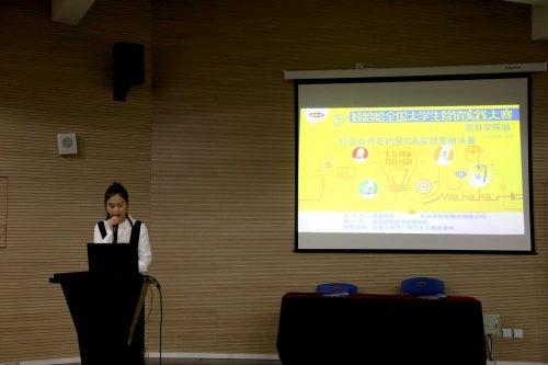 接下來是娃哈哈旗集團代表發(fā)言:通過營銷大賽活動豐富大學生的科學理論知識和聯(lián)系實際能力,為學生提供實踐的機會,發(fā)揮大學生的自主創(chuàng)造力;提升公司的知名度與銷量;更好的更快捷找到公司需要的人才。