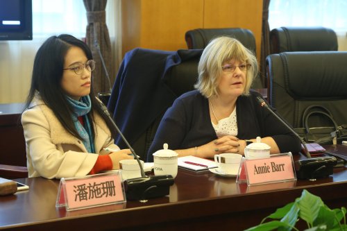 公共衛(wèi)生與護理學(xué)院院長趙佩君教授首先介紹了公共衛(wèi)生與護理學(xué)院的大致情況。主要就培養(yǎng)方案、辦學(xué)規(guī)模、師資隊伍、培養(yǎng)模式設(shè)計、2017年護理教學(xué)工作計劃等方面做了闡釋。AnnieBarr女士對實習期的長短、考取執(zhí)照的難易程度、2017年資金使用情況進行了提問,并介紹了ABGI品牌所屬項目和課程評估體系以及品牌的6C理念(Care、Compassion、Competence、Communication、Courage、Commitment)。