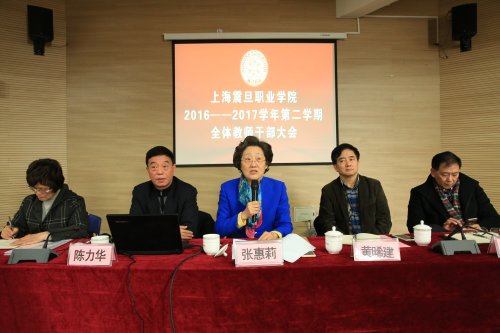 2月24日上午,上海震旦職業(yè)學(xué)院2016-2017學(xué)年第二學(xué)期全體教師干部大會在學(xué)院小禮堂召開。會上黃晞建書記傳達(dá)了2017年春季上海高校黨政領(lǐng)導(dǎo)干部會議精神;陳力華院長做了《團(tuán)結(jié)奮進(jìn),再創(chuàng)新高》的報告,并傳達(dá)了翁鐵慧副市長與教委主任蘇明的講話的主要內(nèi)容,布置學(xué)院2017年的行政教學(xué)工作。最后張惠莉理事長做了鼓舞人心的講話,她談到了學(xué)院“雙創(chuàng)”機(jī)制的建立,大學(xué)的價值、學(xué)院的發(fā)展前景和教師的素養(yǎng)等問題。