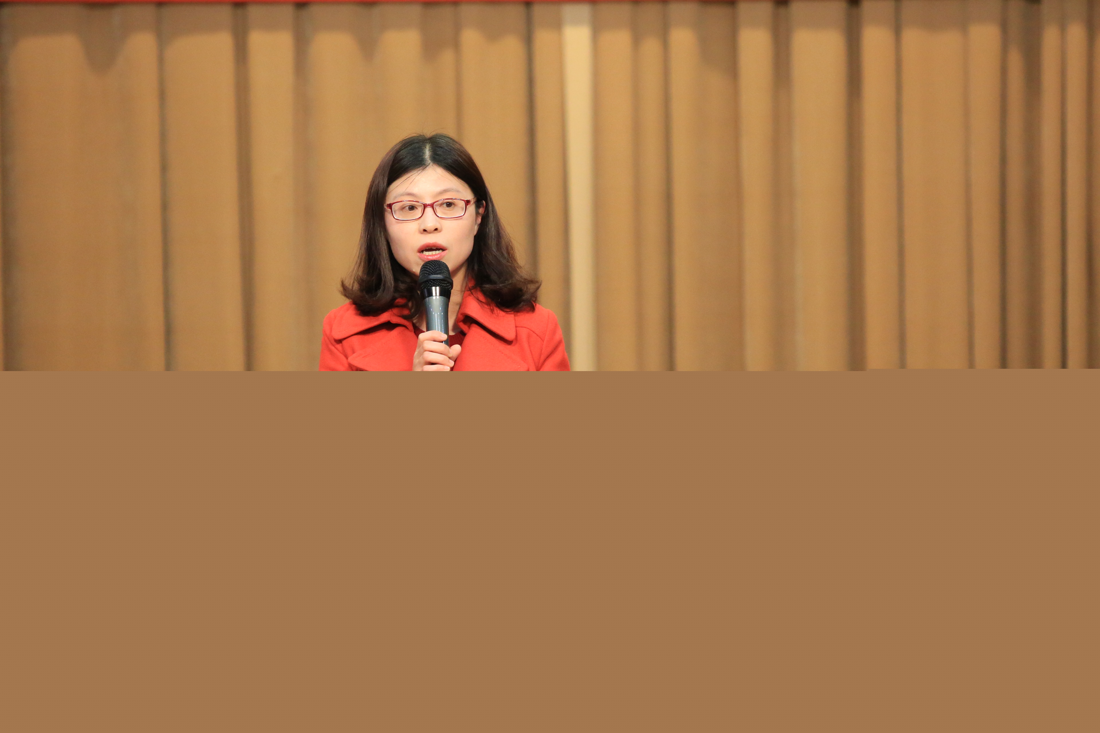 上海震旦職業(yè)學(xué)院學(xué)工部部長毛燕靜代表三八紅旗集體發(fā)言。