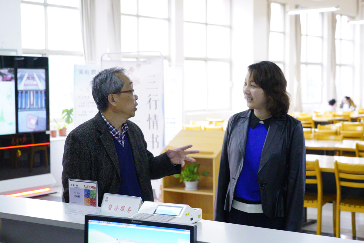 圖書(shū)館張健館長(zhǎng)介紹了近年來(lái)圖書(shū)館開(kāi)展各項(xiàng)服務(wù)工作的基本情況,陪同來(lái)賓參觀了圖書(shū)館各閱覽書(shū)庫(kù)及功能區(qū)域,并感謝明復(fù)圖書(shū)館多年以來(lái)對(duì)我院圖書(shū)館資源建設(shè)的支持。隨后,兩館領(lǐng)導(dǎo)就今后在合作服務(wù)、資源共建、活動(dòng)互動(dòng)、網(wǎng)絡(luò)共享等方面工作進(jìn)行了洽談。
