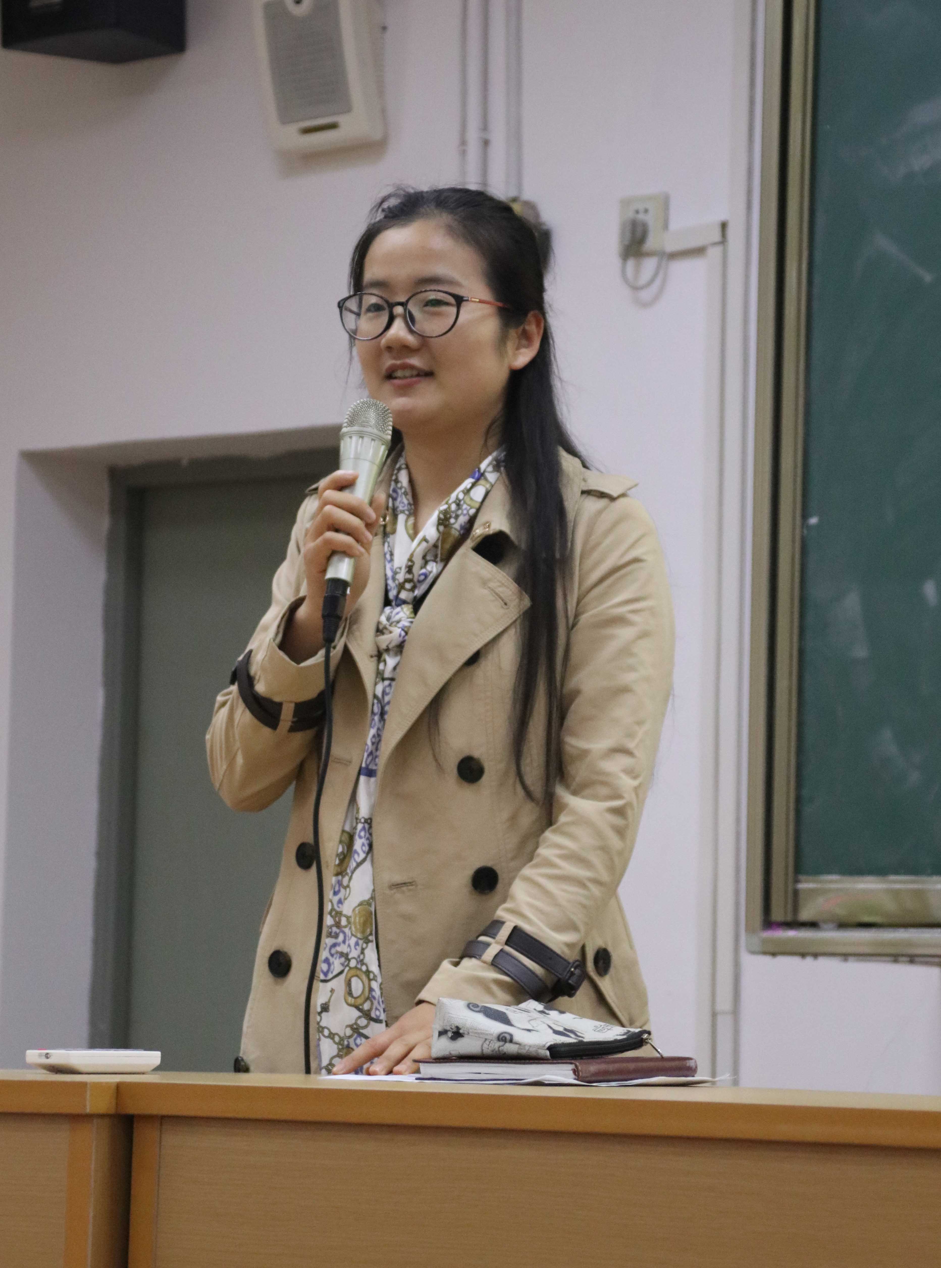 2015級團(tuán)課專場,沈宇光老師首先做了講話,他以“一學(xué)一做”教育實(shí)踐為主題,結(jié)合一線學(xué)生工作經(jīng)驗(yàn),向在場的共青團(tuán)員們講解了共青團(tuán)的歷史,讓團(tuán)員們感受到共青團(tuán)組織的先進(jìn)性;還引用現(xiàn)實(shí)中引人深思的例子,向同學(xué)們講授共青團(tuán)員的義務(wù);2016級團(tuán)課現(xiàn)場,王歡老師以“如何把香蕉皮罵進(jìn)垃圾桶”為例,帶領(lǐng)同學(xué)們走進(jìn)了一堂生動且富有教育意義的團(tuán)課;團(tuán)總支書記喻璐老師結(jié)合團(tuán)中央關(guān)于“一學(xué)一做”教育實(shí)踐的指導(dǎo)思想與實(shí)踐任務(wù)向與會團(tuán)員做了詳細(xì)介紹。幾位老師都向同學(xué)們重申了作為共青團(tuán)員的權(quán)利與義務(wù),并結(jié)合目前班級基層團(tuán)組織——團(tuán)支部的建設(shè),以生動幽默的方式向共青團(tuán)員們強(qiáng)調(diào)了以團(tuán)支書為中心的班級團(tuán)支部建設(shè)重要性。連續(xù)兩年獲得“優(yōu)秀團(tuán)干部”榮譽(yù)稱號獲得者的邱于青同學(xué)作為團(tuán)員代表在團(tuán)課上做了發(fā)言,她以自身成長為例,介紹了如何以實(shí)際行動努力做一名優(yōu)秀的共青團(tuán)員,引人深思、深受感觸。