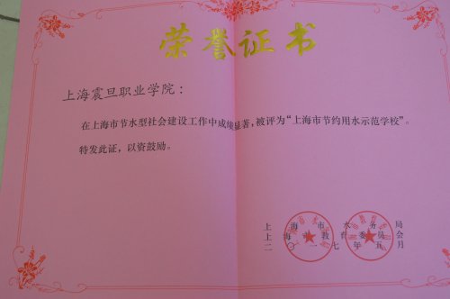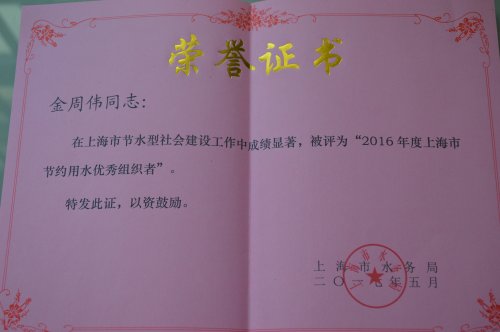 2017年1月21日,我校通過上海市水務(wù)局與上海市教育委員會(huì)聯(lián)合考評(píng)。5月15日,在上海外國語大學(xué)召開的“2016年度上海市節(jié)水型學(xué)?!北碚么髸?huì)上,我校榮獲了“上海市節(jié)水型示范?!狈Q號(hào)(2016年度共四家單位獲此殊榮)。后保處金周偉同志獲2016度上海市節(jié)約用水優(yōu)秀組織者。