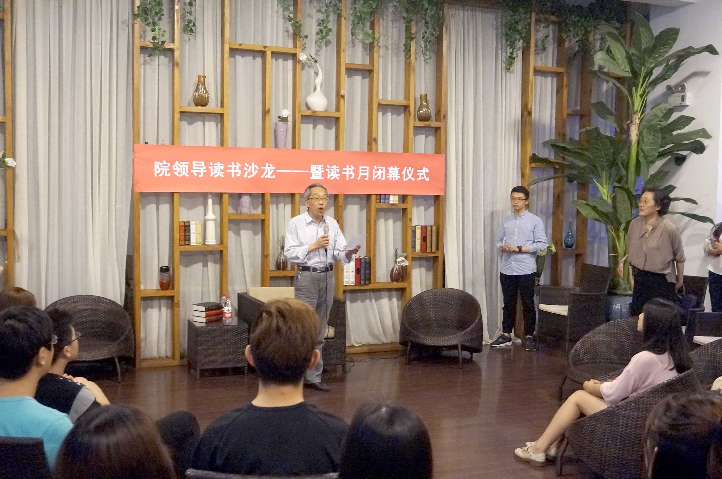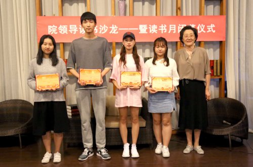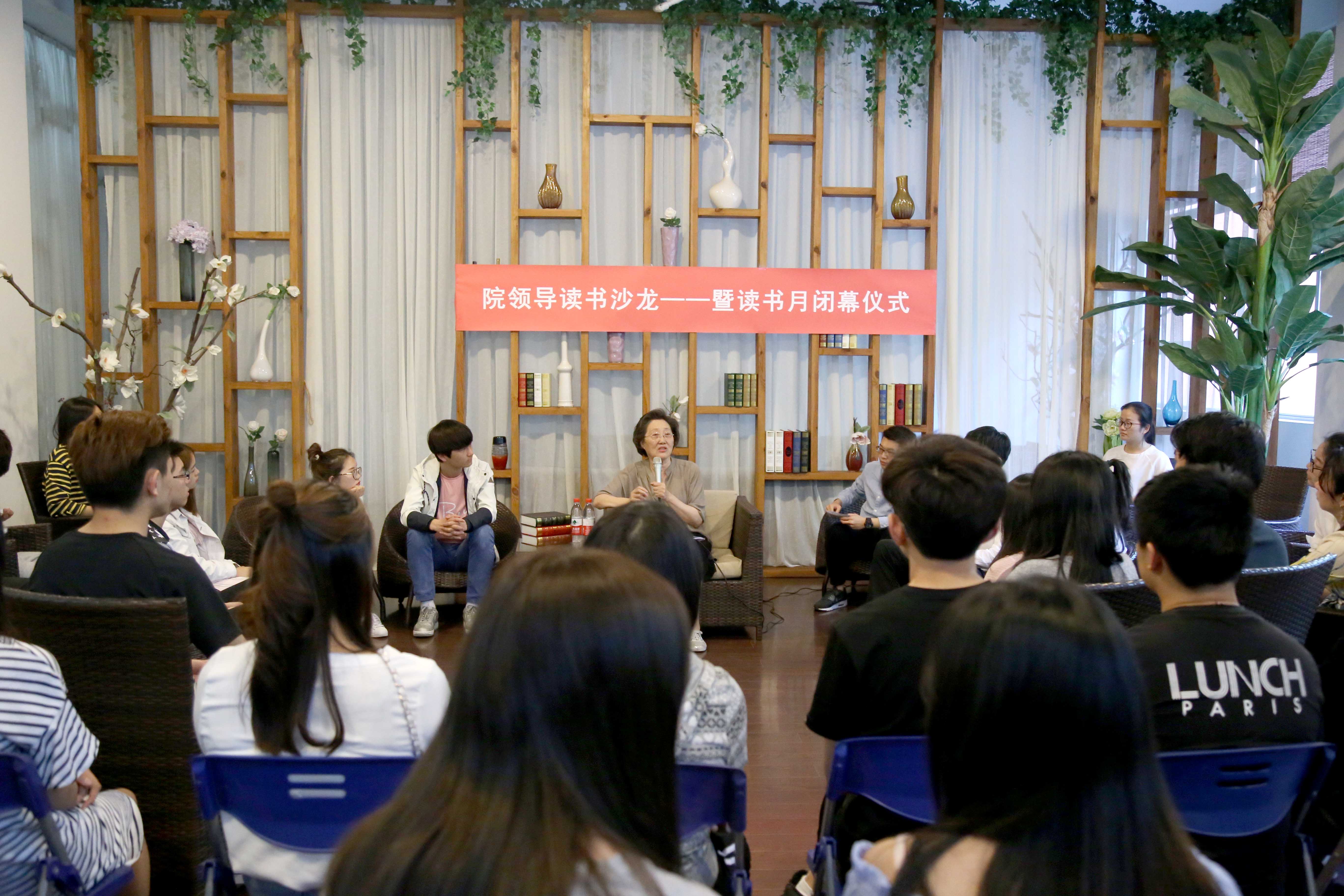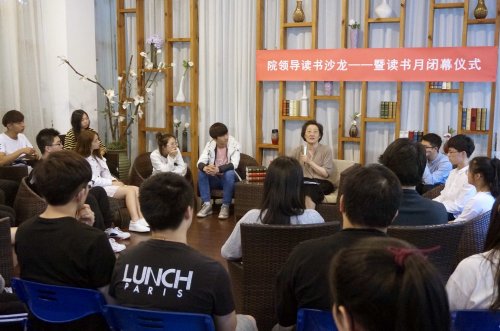 院領(lǐng)導(dǎo)讀書沙龍——暨讀書月閉幕儀式在體藝樓一樓茶座舉行,圖書館邀請張惠莉理事長向同學(xué)們分享自己的讀書心得和感悟,圖書館館長張健、院長辦公室主任張莉、團(tuán)委書記曹曉莉、信息中心副主任金瑤以及三十余位學(xué)生代表出席了活動。