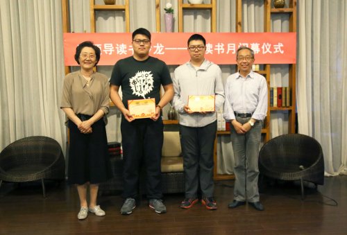 互動結(jié)束后,主持人介紹了第六屆“震旦讀書月”的活動:“三行情書”征文和“美在震旦”攝影比賽的情況,并宣布獲獎名單,張惠莉理事長和其他領(lǐng)導(dǎo)給獲獎同學(xué)頒發(fā)了獎狀,并與所有獲獎同學(xué)合影。