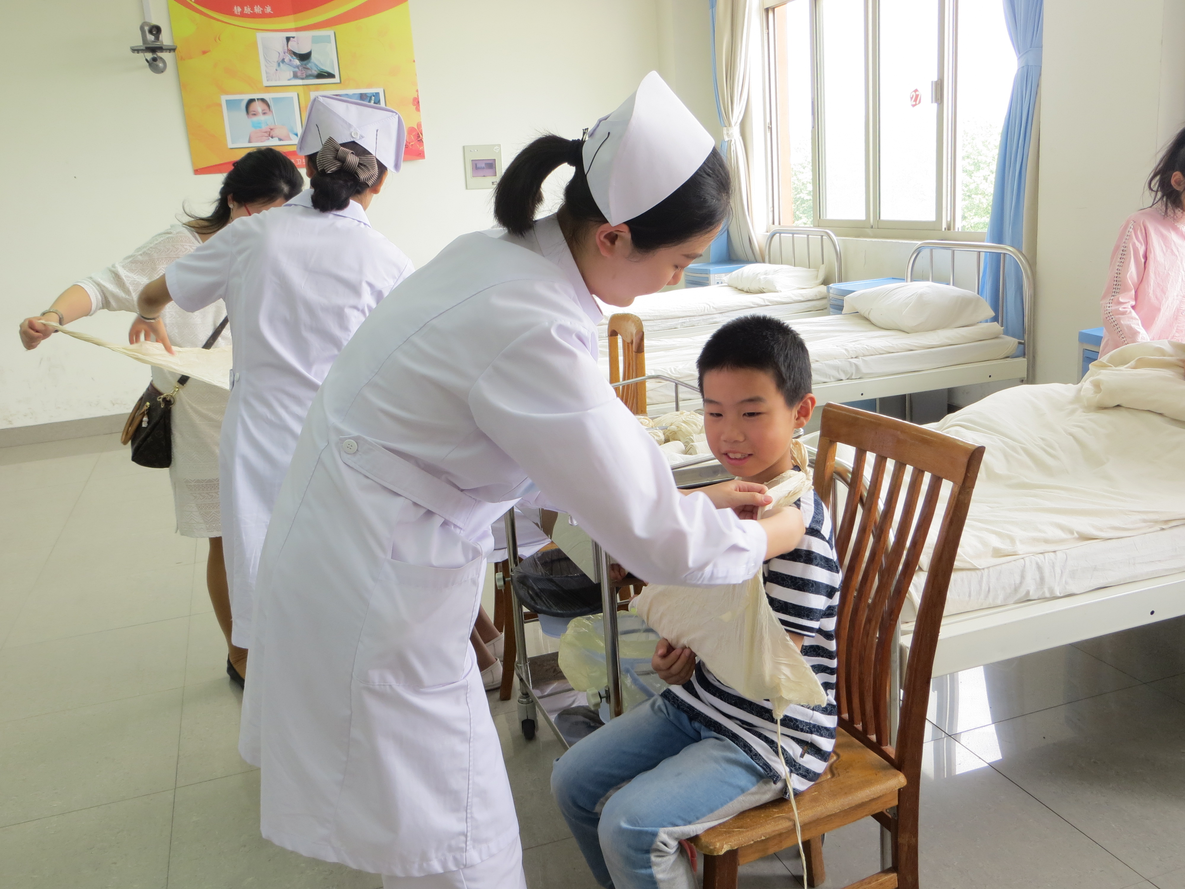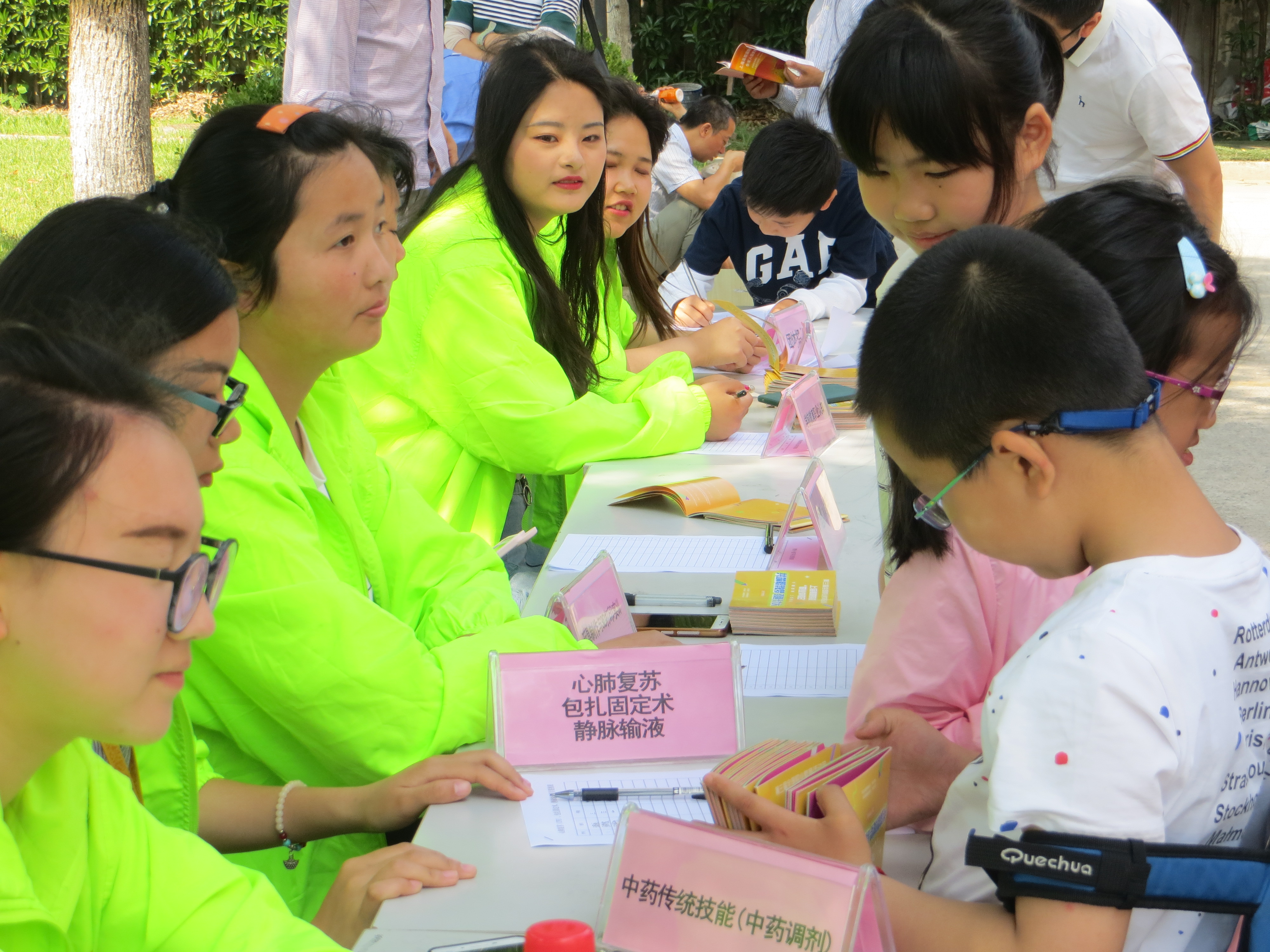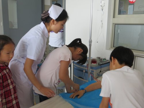 心肺復(fù)蘇術(shù)(CPR)是針對(duì)呼吸心跳停止的急危重癥病人所采取的搶救關(guān)鍵措施。包扎固定是外傷現(xiàn)場(chǎng)應(yīng)急處理的重要措施之一。靜脈輸液是利用大氣壓和液體靜壓原理將大量無(wú)菌液體、電解質(zhì)、藥物由靜脈輸入體內(nèi)的方法,是日常治療中常見(jiàn)的護(hù)理操作。在這幾個(gè)項(xiàng)目中,孩子們和家長(zhǎng)一起學(xué)習(xí)如果在緊急情況下施救、包扎,學(xué)到了非常實(shí)用的技術(shù)。體驗(yàn)過(guò)程中,家長(zhǎng)和孩子們不僅學(xué)到了實(shí)用的急救技能,還親自感受到白衣天使的神圣,也體會(huì)到他們的辛苦。