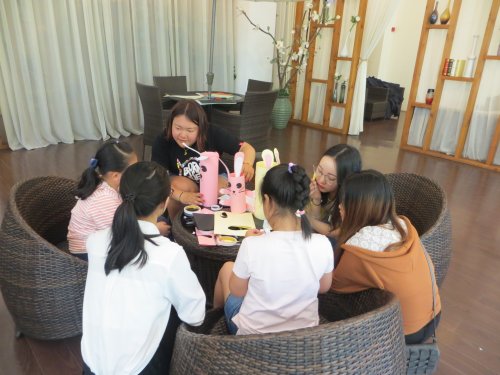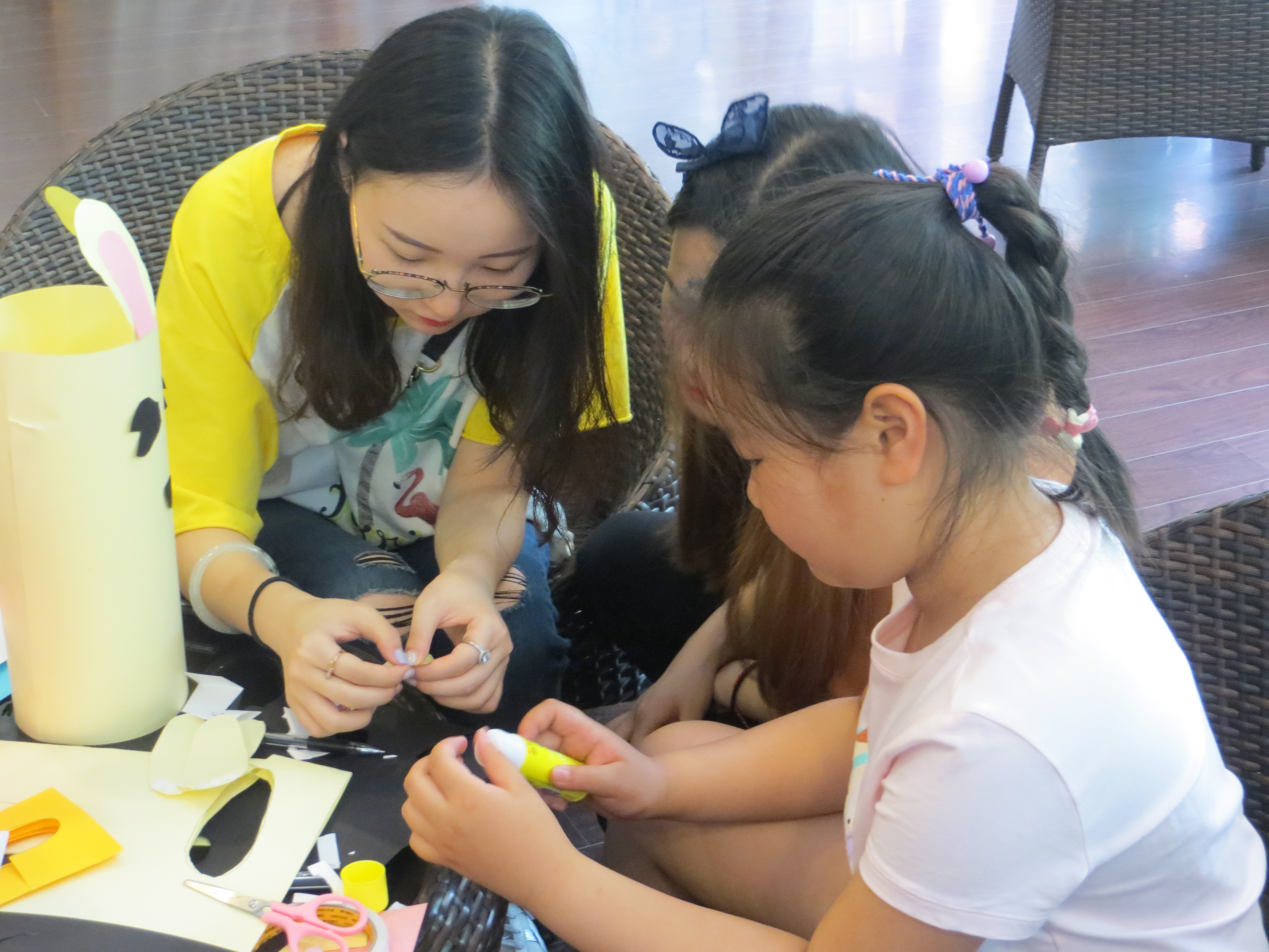 這個(gè)項(xiàng)目采用播放視頻、兒童游戲、手工制作、講故事等與學(xué)生互動(dòng),生動(dòng)有趣的向同學(xué)們體現(xiàn)專(zhuān)業(yè)特色。手工制作室女孩們最喜歡的模塊,孩子們和老師一起做出漂亮的玩具擺件,成就感爆棚。
