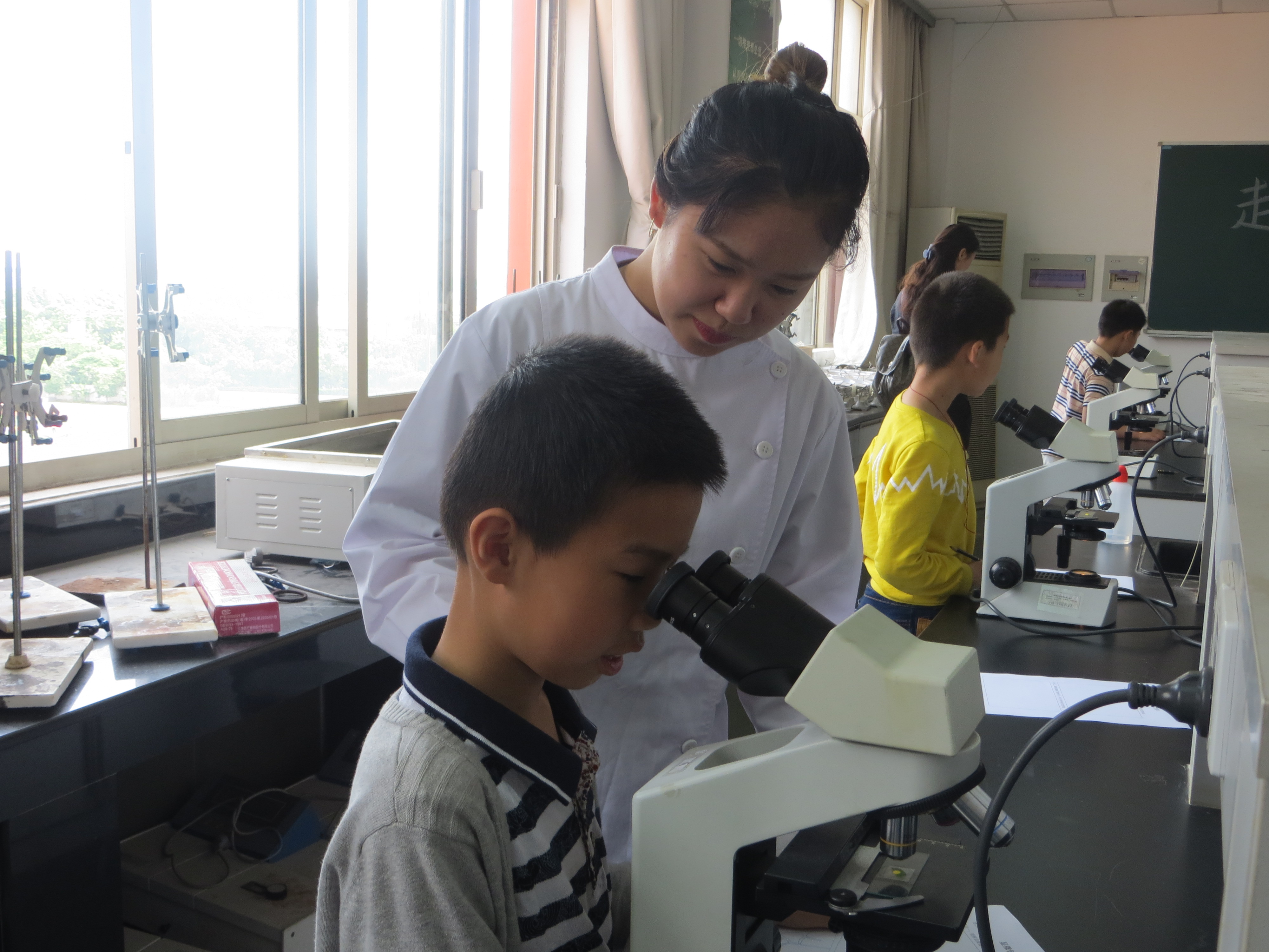 顯微鏡觀察微生物可使同學(xué)們對(duì)看不到摸不著的微生物細(xì)胞有個(gè)更深刻的認(rèn)識(shí)。孩子們可以在老師的幫助下利用顯微鏡觀察各種微生物細(xì)胞、植物細(xì)胞和動(dòng)物細(xì)胞,并按照老師的要求畫(huà)出看到的微生物和動(dòng)植物細(xì)胞圖片拍照留念。帶教老師還專(zhuān)門(mén)采集了自己的血液做成涂片,讓孩子們看到了血液中的紅細(xì)胞,神奇的微觀世界呈現(xiàn)在體驗(yàn)者的眼前。