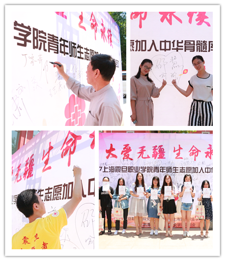 5月26日上午9點30分,上海震旦職業(yè)學(xué)院青年師生志愿加入中華骨髓庫現(xiàn)場樣本采集活動在我校體藝樓底樓舉行,寶山區(qū)紅會副會長金培生老師、校黨委書記黃晞建老師、院長陳力華老師、黨委副書記夏臻老師、文明辦主任黃敏老師、團委書記曹曉莉老師親臨了本次活動。