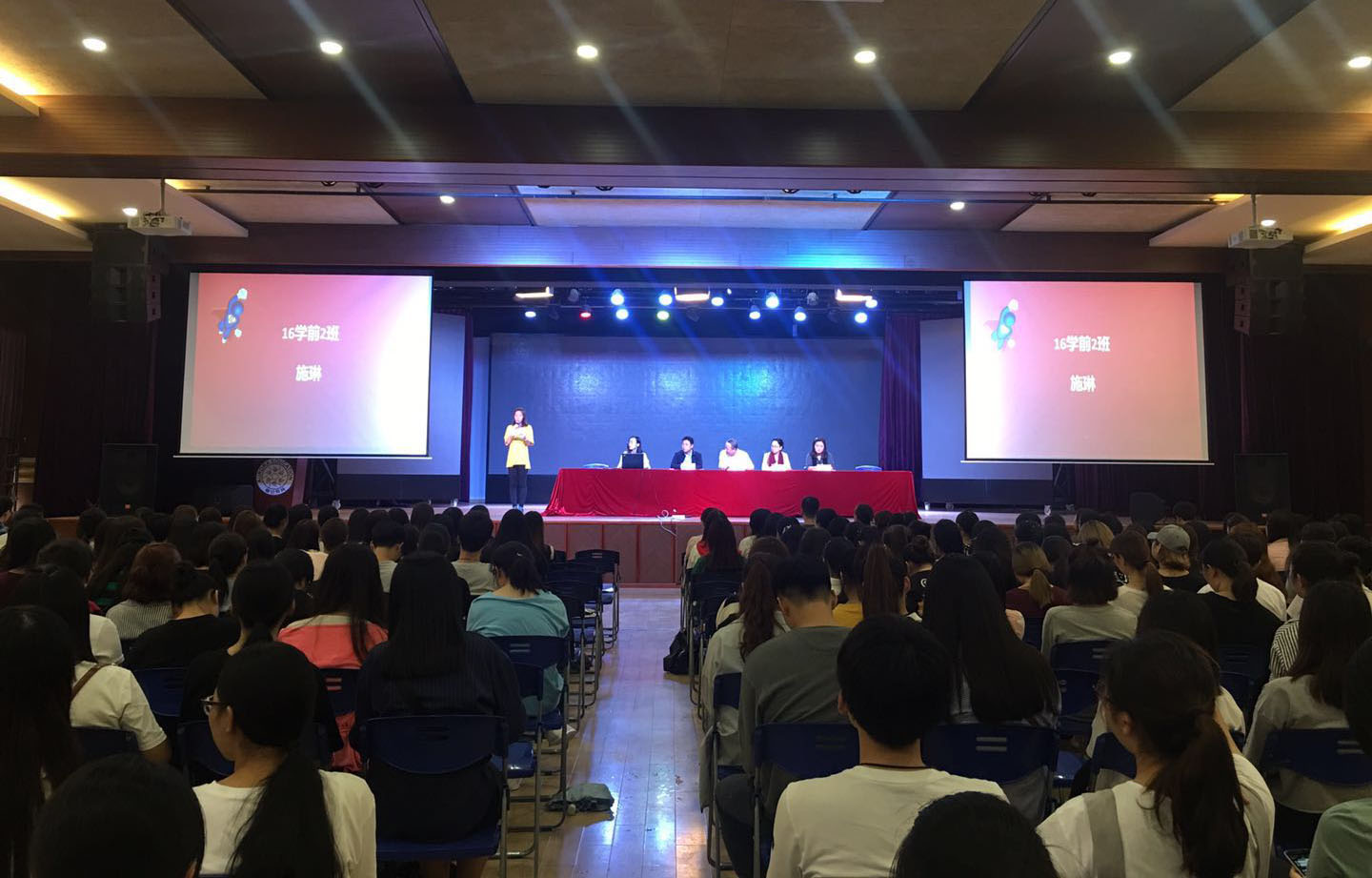 為幫助2016級學(xué)生在大二學(xué)習(xí)生活中,找準(zhǔn)自身發(fā)展的定位,2017年9月25日下午,教育學(xué)院在校大禮堂召開了2016級年級大會。出席本次大會的有教育學(xué)院院長黨支部書記錢源偉老師、副院長學(xué)前專業(yè)主任李杰老師、校藝術(shù)中心主任高瞻老師、教育學(xué)院黨支部副書記張軍勝老師、教育學(xué)院團(tuán)總支書記楊彥琛老師以及各專業(yè)老師和輔導(dǎo)員老師們和全體2016級學(xué)生。