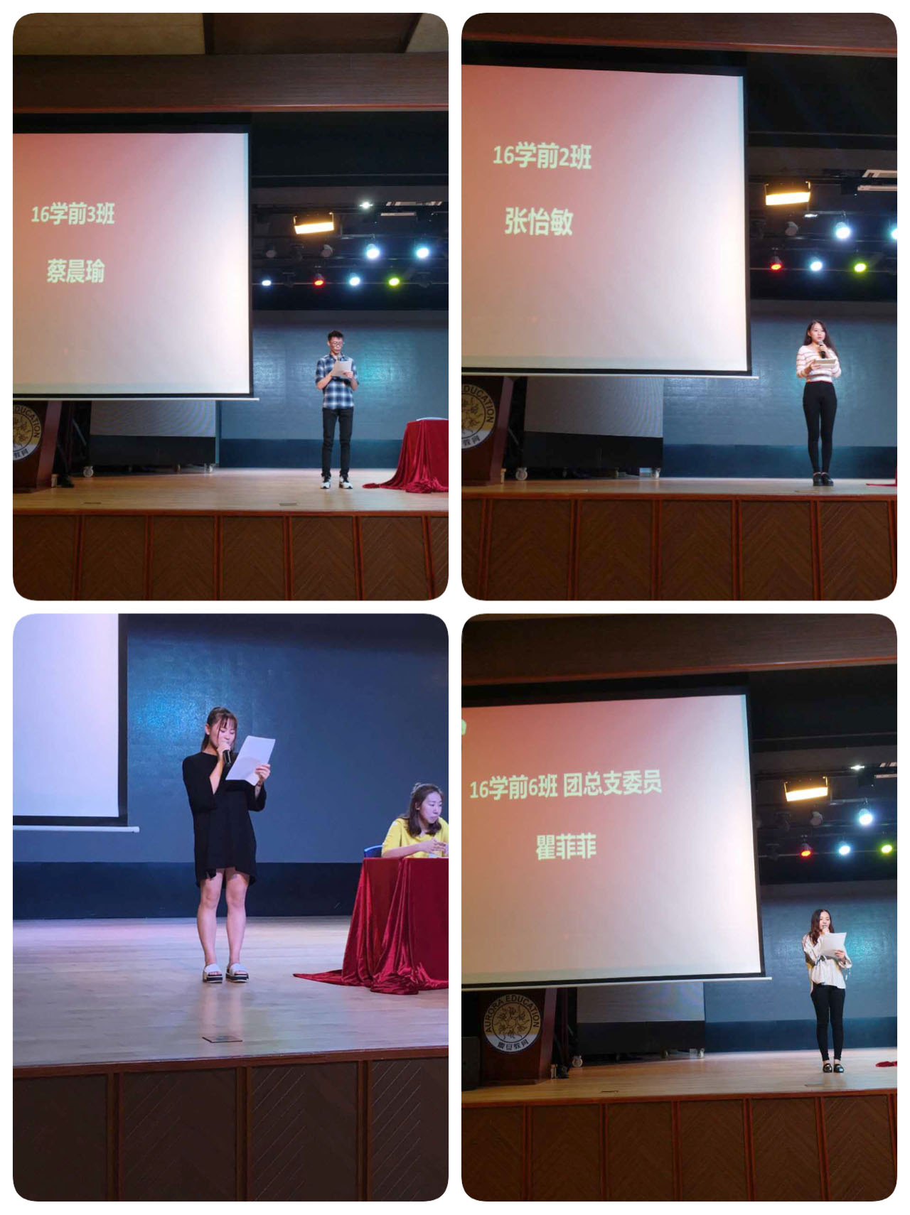 大會開始,來自16學(xué)前2班的施琳、張怡敏同學(xué),16學(xué)前3班的蔡晨瑜同學(xué)和16學(xué)前6班的瞿菲菲同學(xué)分別從學(xué)習(xí)與實踐、藝術(shù)類發(fā)展、學(xué)習(xí)生活和團(tuán)總支社會實踐的等角度進(jìn)行發(fā)言。副院長李杰老師對他們的發(fā)言進(jìn)行了總結(jié),希望大家以這幾位同學(xué)為榜樣,找準(zhǔn)定位,堅定目標(biāo)。