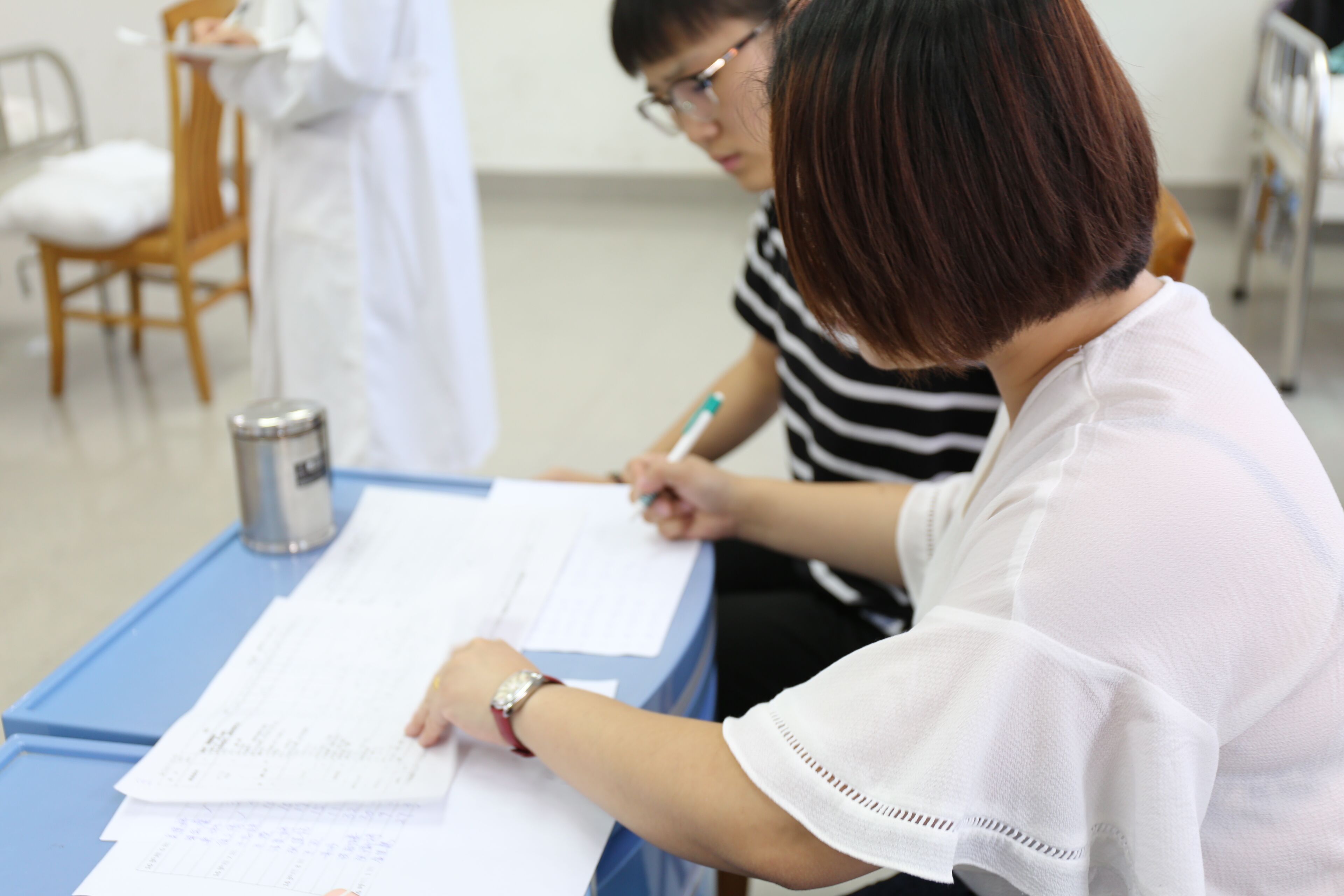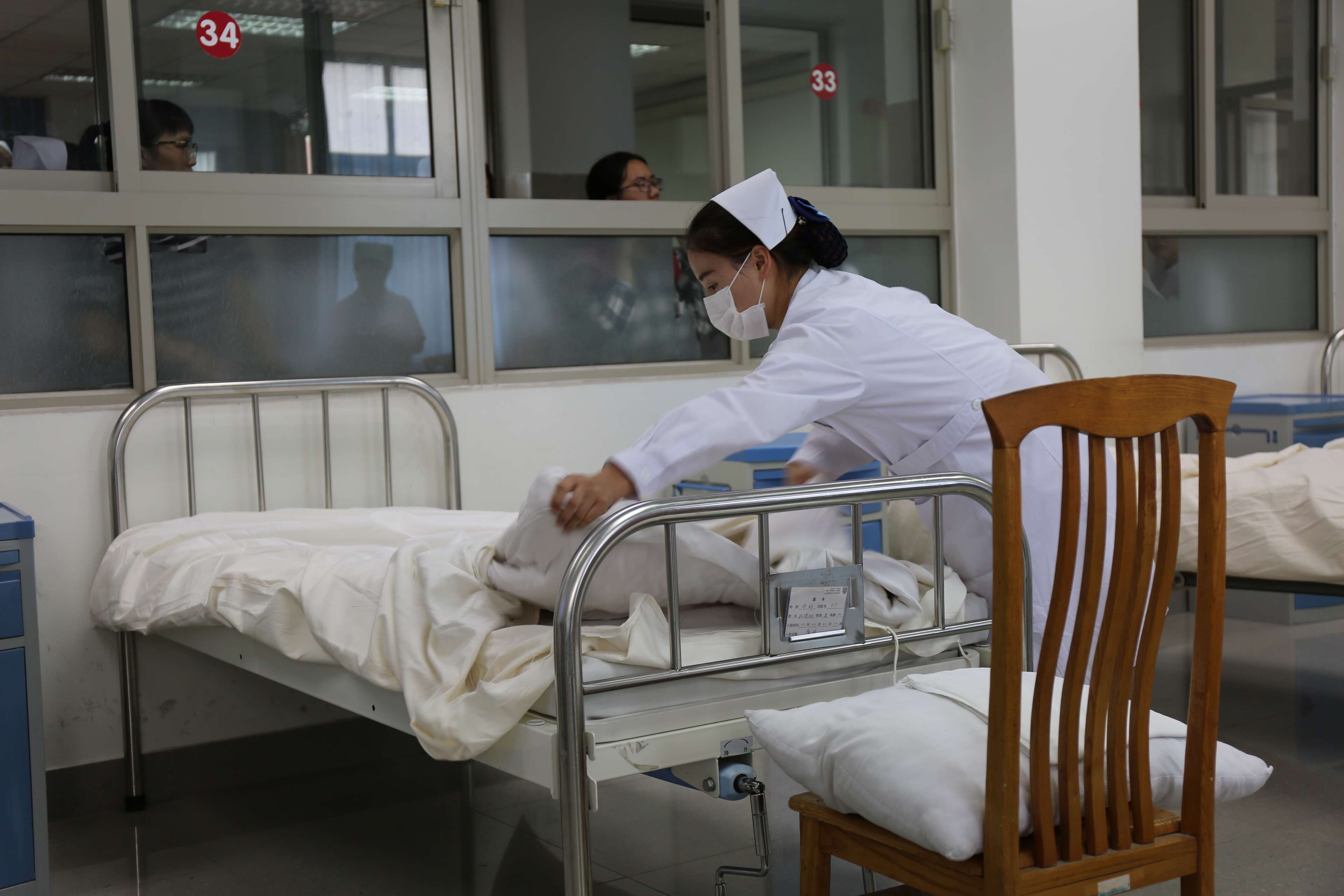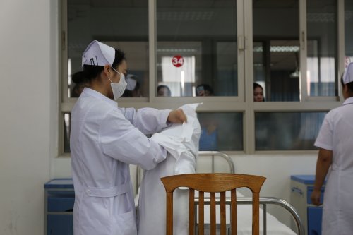 本次護理技能大賽參賽對象為16級護理專業(yè)學(xué)生,每班4名,共32名參賽選手。比賽項目是鋪備用床,比賽地點在1-510實訓(xùn)教室,擔(dān)任本次比賽的評委老師分別是許愛芝老師、曹婷老師和王云老師。