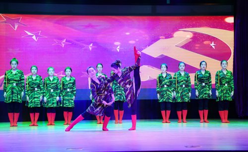 音樂舞蹈中心帶來的舞蹈《紅色贊歌》拉開了晚會的序幕。表演者們身穿迷彩服,迎著變換的燈光,那抹好似圣潔之光的綠色照進每一位震旦人的心,旋轉(zhuǎn)、跳躍,昂首挺胸的身姿踏著音樂的旋律,曼妙的肢體譜寫生命的律動之美,和諧之韻,舞出了對中國共產(chǎn)黨的深深敬意。