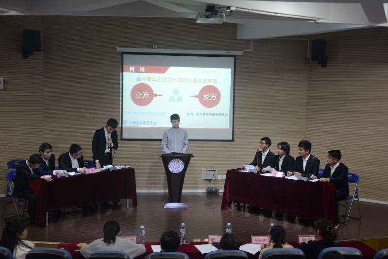 2017年10月24日下午四點(diǎn)三十分。“心系十九大,爭做新青年”辯論賽如約舉行,經(jīng)過初賽和復(fù)賽的篩選,八名同學(xué)脫穎而出。本次辯論賽圍繞“當(dāng)今青年,應(yīng)該立于現(xiàn)實(shí)還是追逐夢想”展開,正方主張現(xiàn)實(shí)鋪墊夢想,而反方主張夢想照亮現(xiàn)實(shí)。