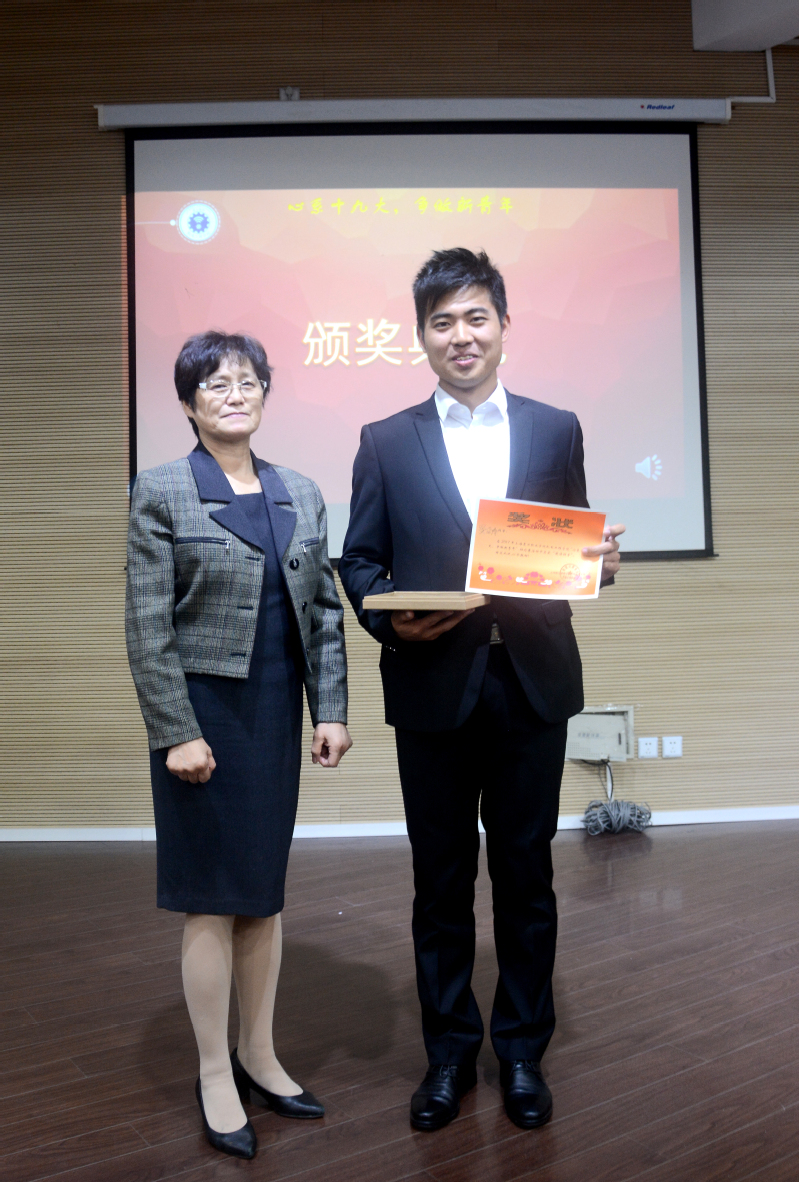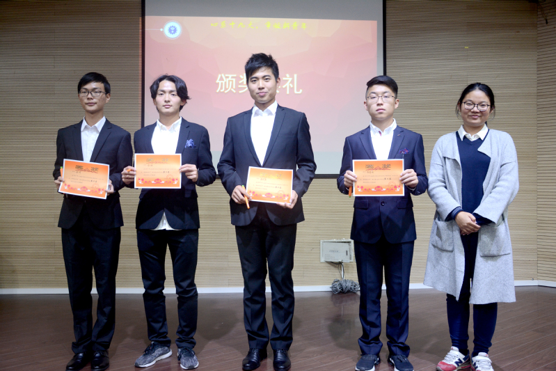 節(jié)目過后,主持人公布獲獎名單,由胡克文老師為最受歡迎辯手黃司韜頒獎,由毛燕靜老師為正方隊(duì)伍頒發(fā)一等獎,曹曉莉老師為反方隊(duì)伍頒發(fā)二等獎,由夏臻老師為最佳辯手竇金博頒獎。
