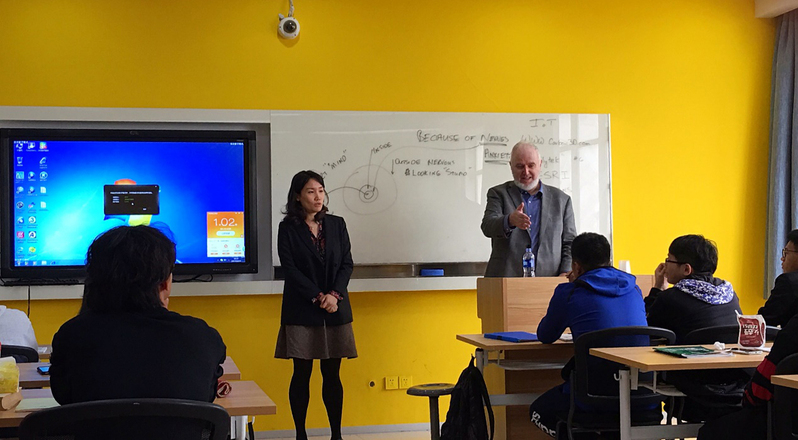 加州浸會(huì)大學(xué)(CBU)成立于 1950 年,被“美國(guó)新聞與世界報(bào)道”評(píng)為全美頂尖大學(xué)之一,美國(guó)西部大學(xué)排名第38位。自2016年起,我校與加州浸會(huì)大學(xué)開(kāi)展了“國(guó)際物聯(lián)網(wǎng)(中美合作)”專(zhuān)業(yè),旨在培養(yǎng)具備全球視野的高素質(zhì)物聯(lián)網(wǎng)專(zhuān)業(yè)人才。因此,此次訪問(wèn),Dr. Donaldson特意走入17級(jí)國(guó)際物聯(lián)網(wǎng)專(zhuān)業(yè)的課堂,與同學(xué)們親切交流,及時(shí)了解學(xué)習(xí)動(dòng)態(tài)。
