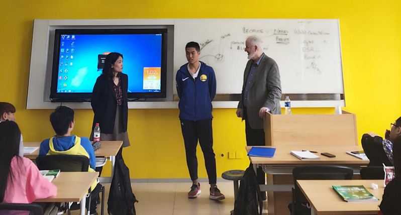 在課堂上,Dr. Donaldson首先向同學(xué)們做了簡(jiǎn)短的自我介紹,隨即邀請(qǐng)全班同學(xué)上臺(tái)用英語(yǔ)做口頭展示,并就國(guó)際課程學(xué)習(xí)情況和學(xué)習(xí)動(dòng)機(jī)等問(wèn)題進(jìn)行了現(xiàn)場(chǎng)交流。隨后,Dr. Donaldson進(jìn)一步指出,保持對(duì)學(xué)習(xí)的專(zhuān)注,發(fā)揚(yáng)團(tuán)隊(duì)合作精神是大學(xué)成功學(xué)習(xí)的重要因素。最后,他預(yù)祝同學(xué)們學(xué)業(yè)有成。